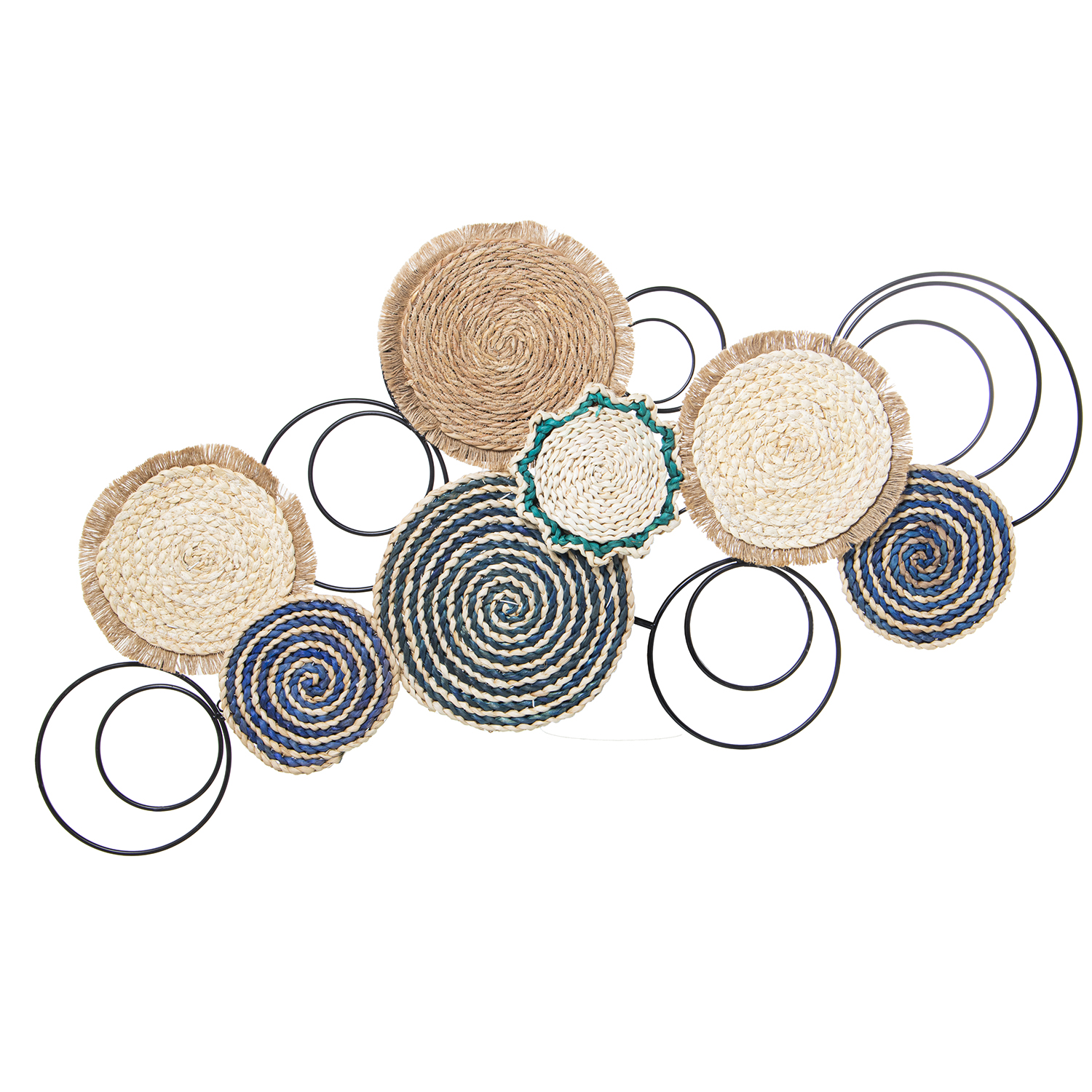 ADORNO PARED METAL/PAJA TRENZA PERCHERO Y ASIENTO