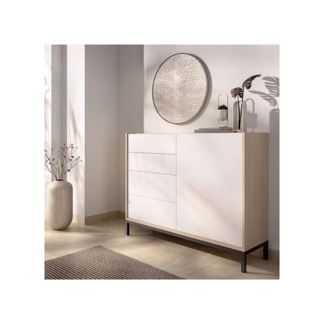 Aparador 120 cm roble y blanco con cajones