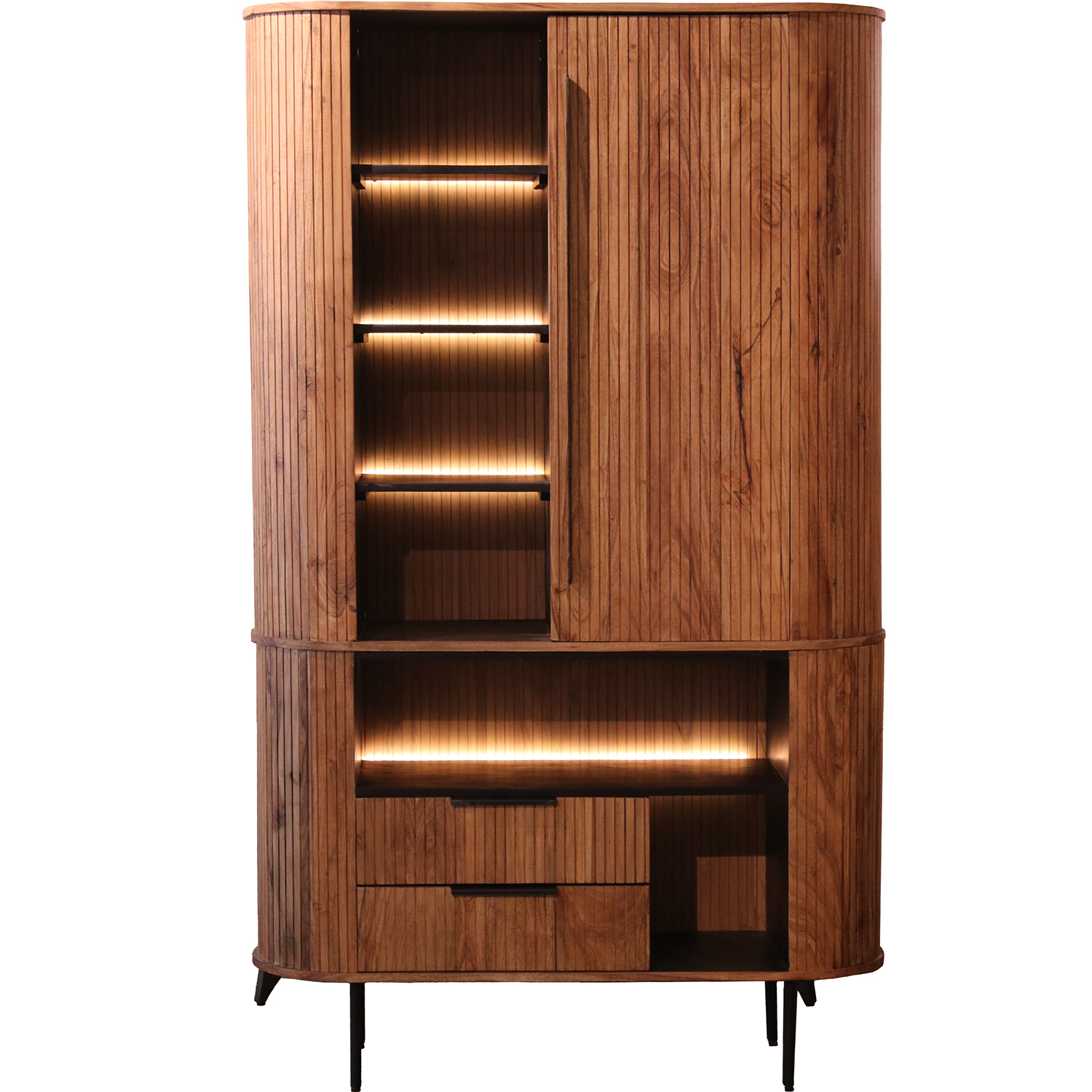 ARMARIO MADERA ACACIA C/PUERTA/PUERTA +4 ESTANTES C/LUZ LED _118X40X195CM, PATAS HIERRO