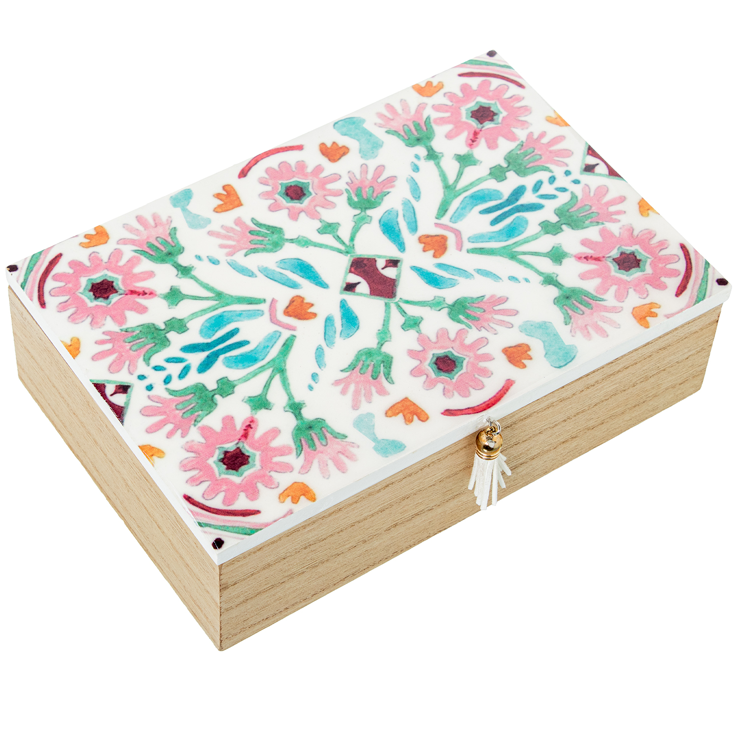 CAJA MADERA DECORADA DECO. FLO. FLORES _24X16X7CM