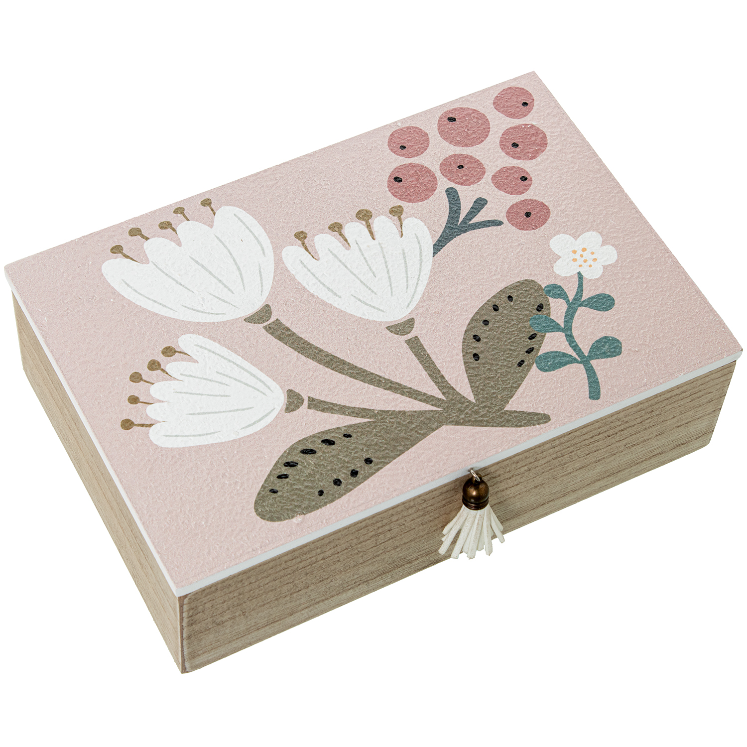 CAJA MADERA DECORADA ROSA FLORLORES