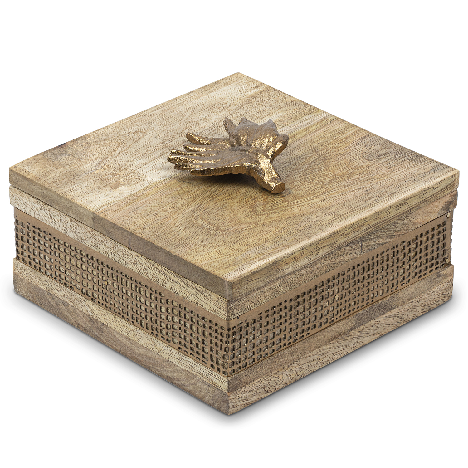CAJA MADERA/METAL DORADO _17X17X9CM