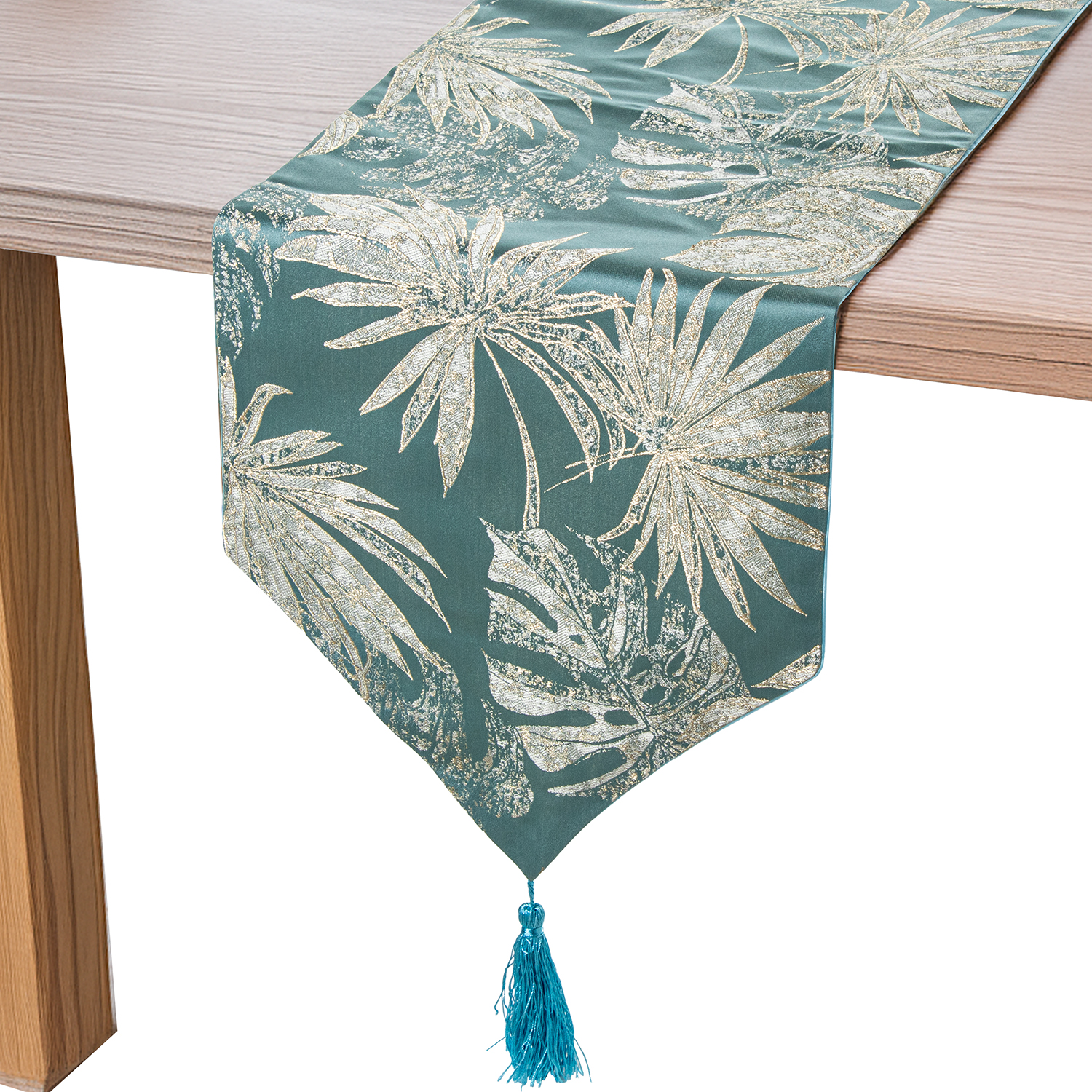 CAMINO DE MESA 30X180CM AZUL 1TER DECO. HOJAS _30X180CM