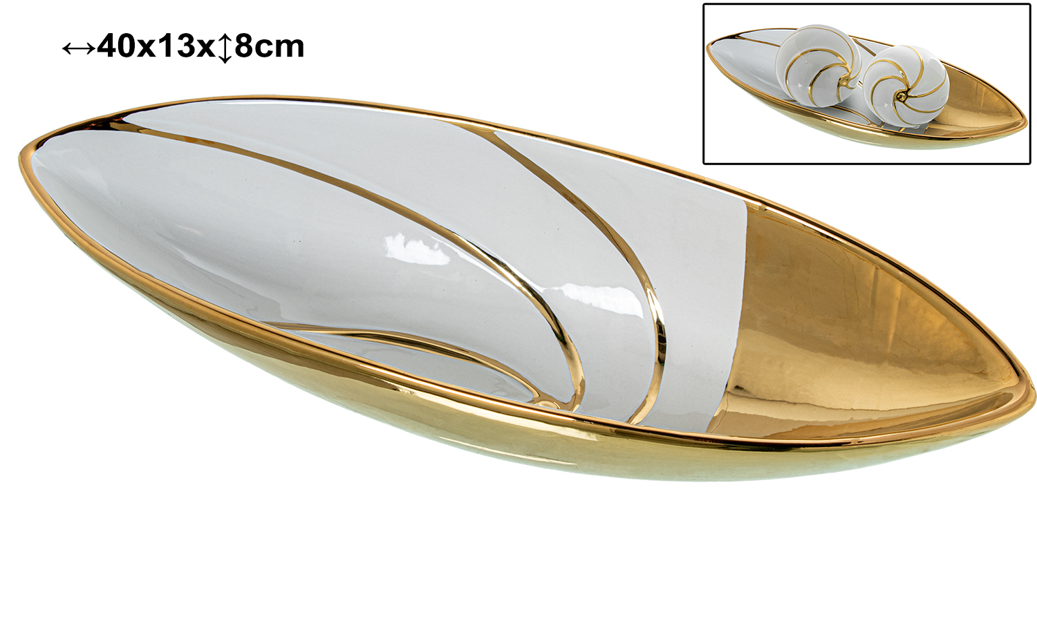 CENTRO CERAMICA BLANCO BRILLO/ANCO BRILLO/ORO _40X13X8CM