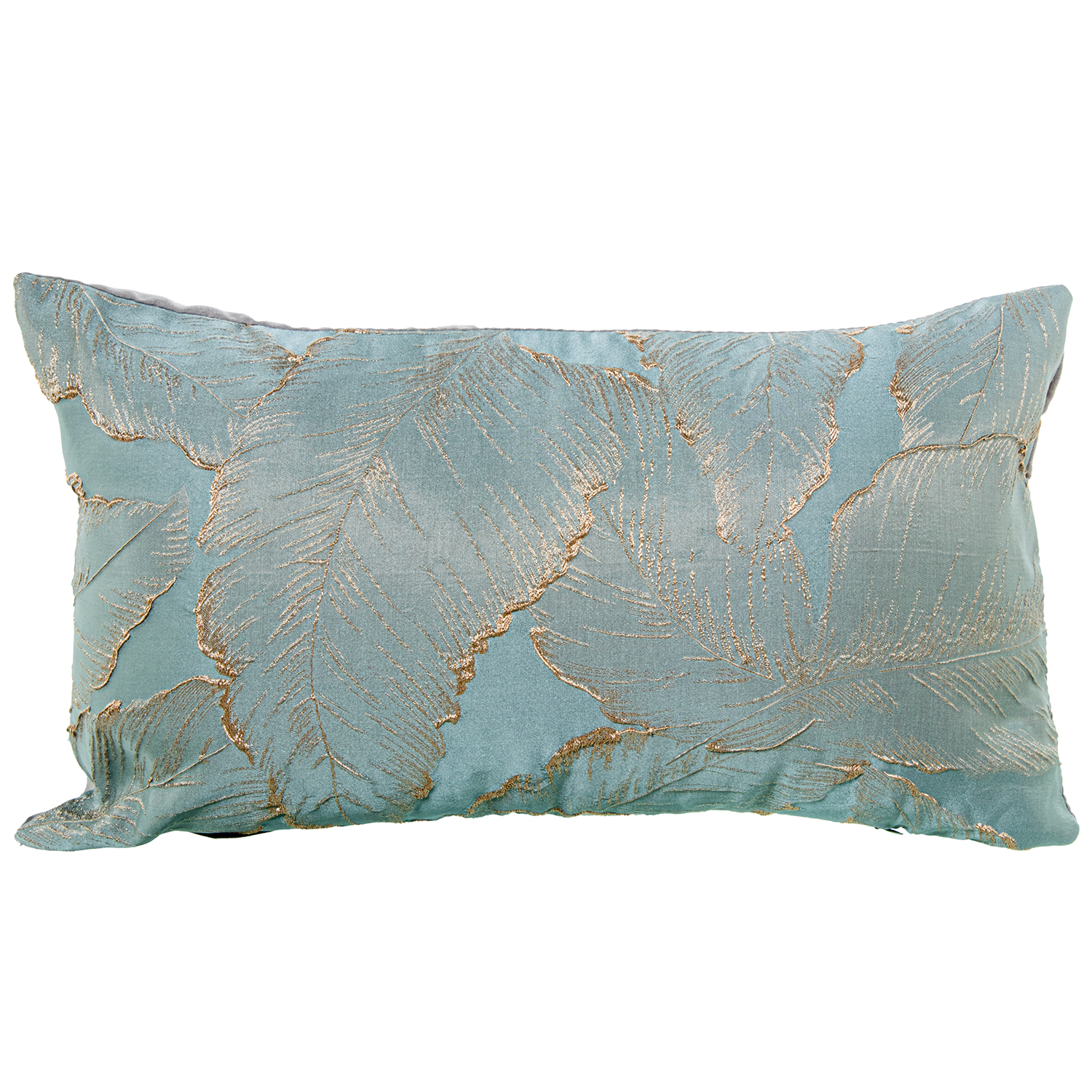 COJÍN 50X30CM AZUL HOJAS MARRÓN 100% POLIESTER TRASERA GRIS _50X30CM, CON CREMALLERA
