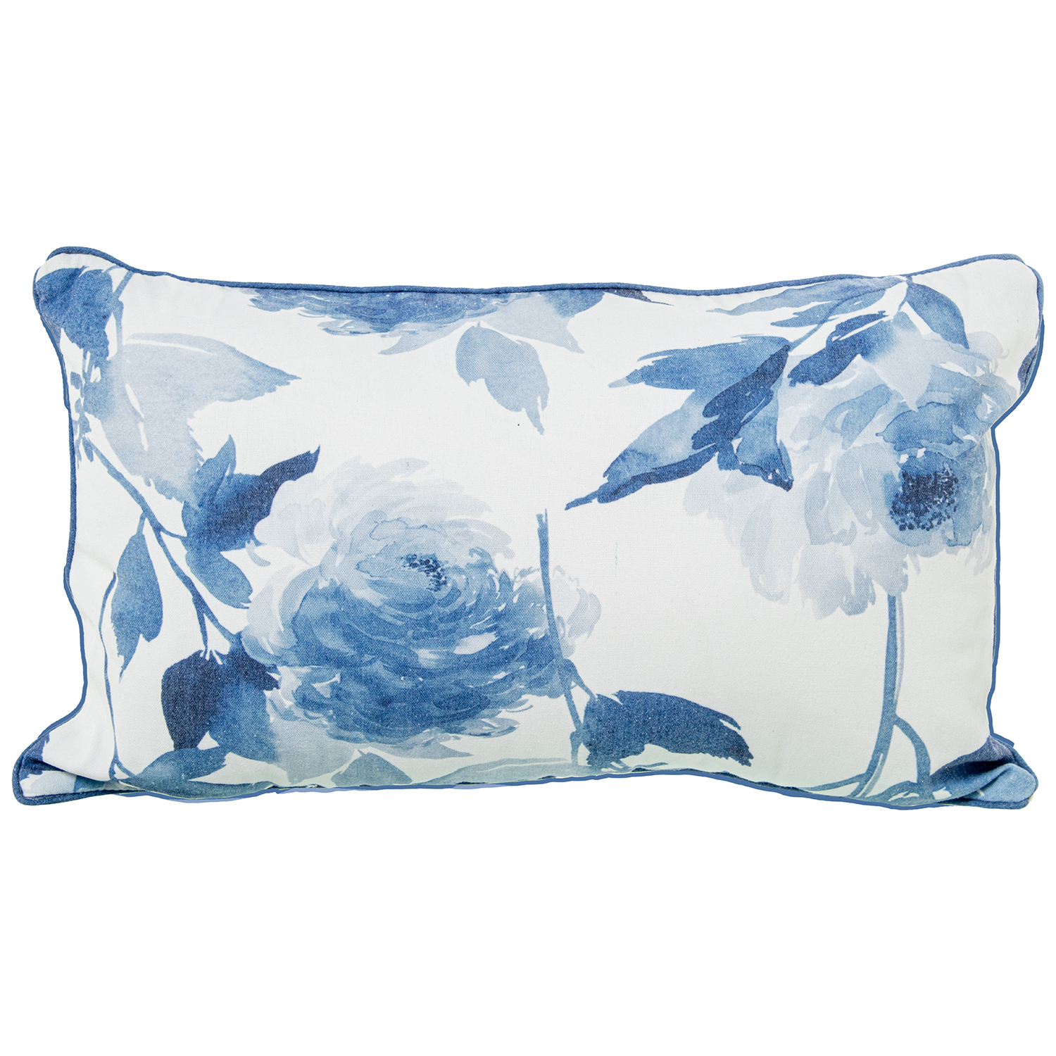 COJÍN 50X30CM BLANCO FLORES AZULES 80% POLIÉSTER 20% ALGODÓN