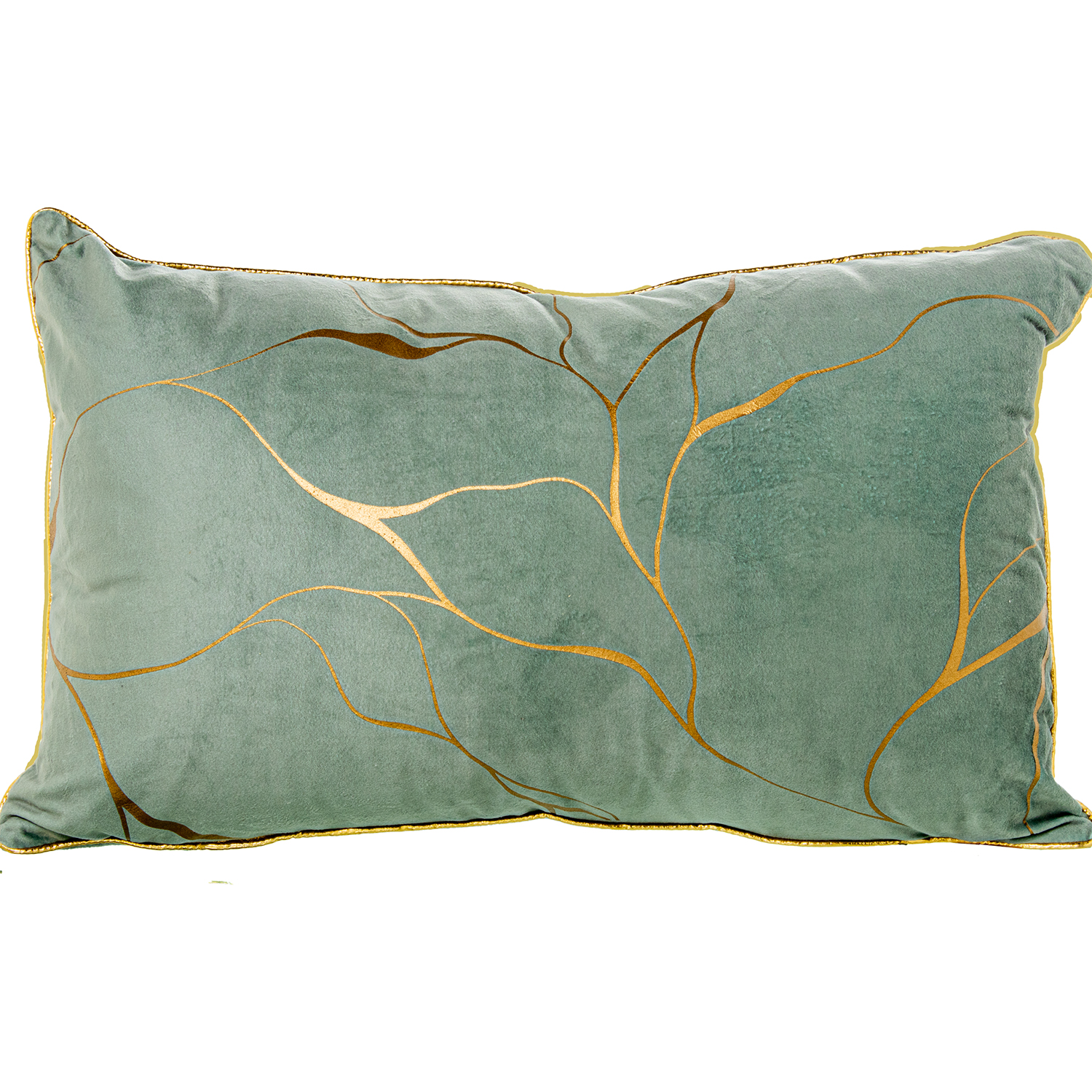 COJÍN 50X30CM TERCIOPELO VERDE/ORO 100% POLIÉSTER
