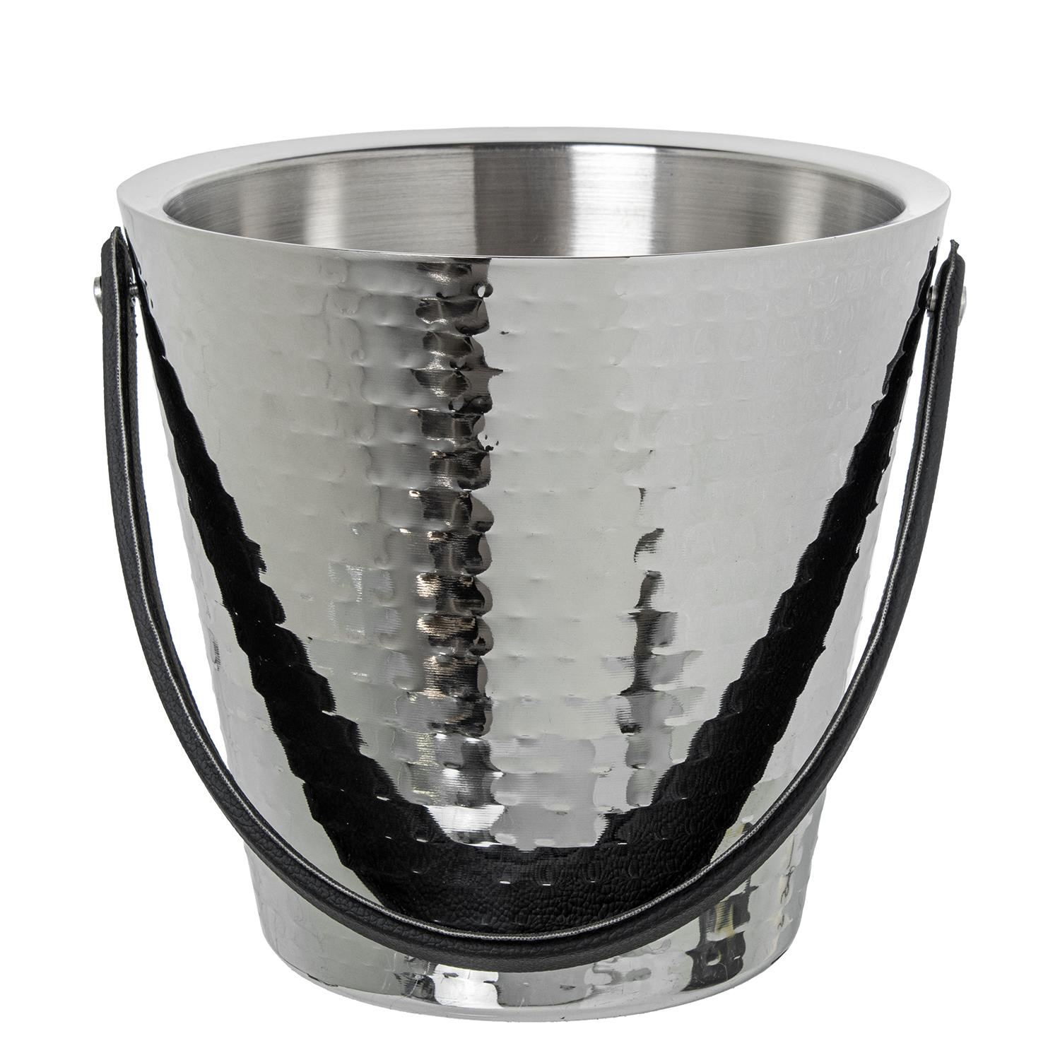 CUBO CHAMPANERA ACERO INOX. C/SA CUERO, MARTILLADO BRILLO _ø23X22CM BASE:ø16CM
