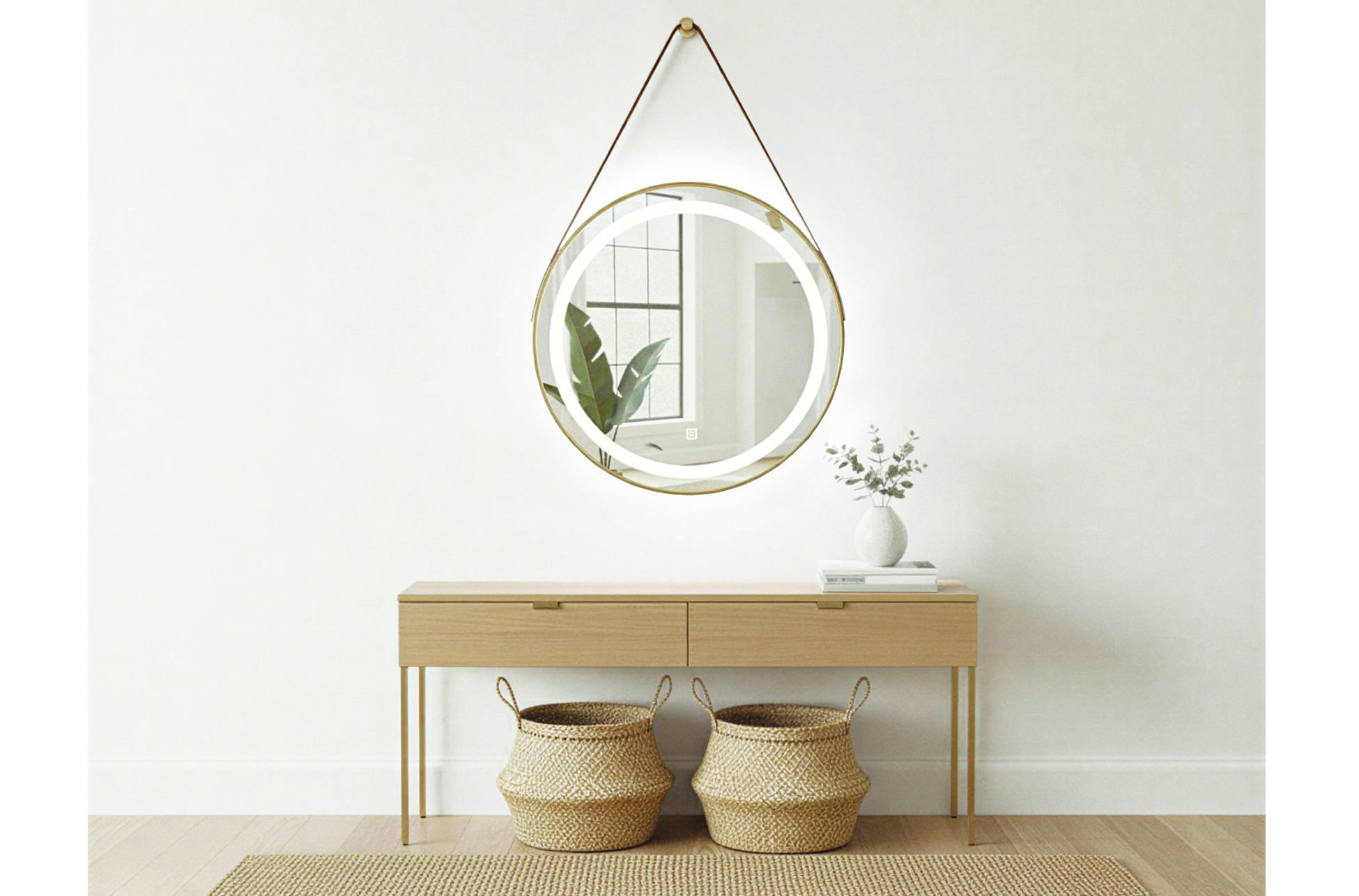 ESPEJO COLGAR CON MARCO DORADO E ILUMINACION LED BELT 60 X 60 CM. Espejo colgar iluminación led en 3 colores, luz fria, media y luz cálida.