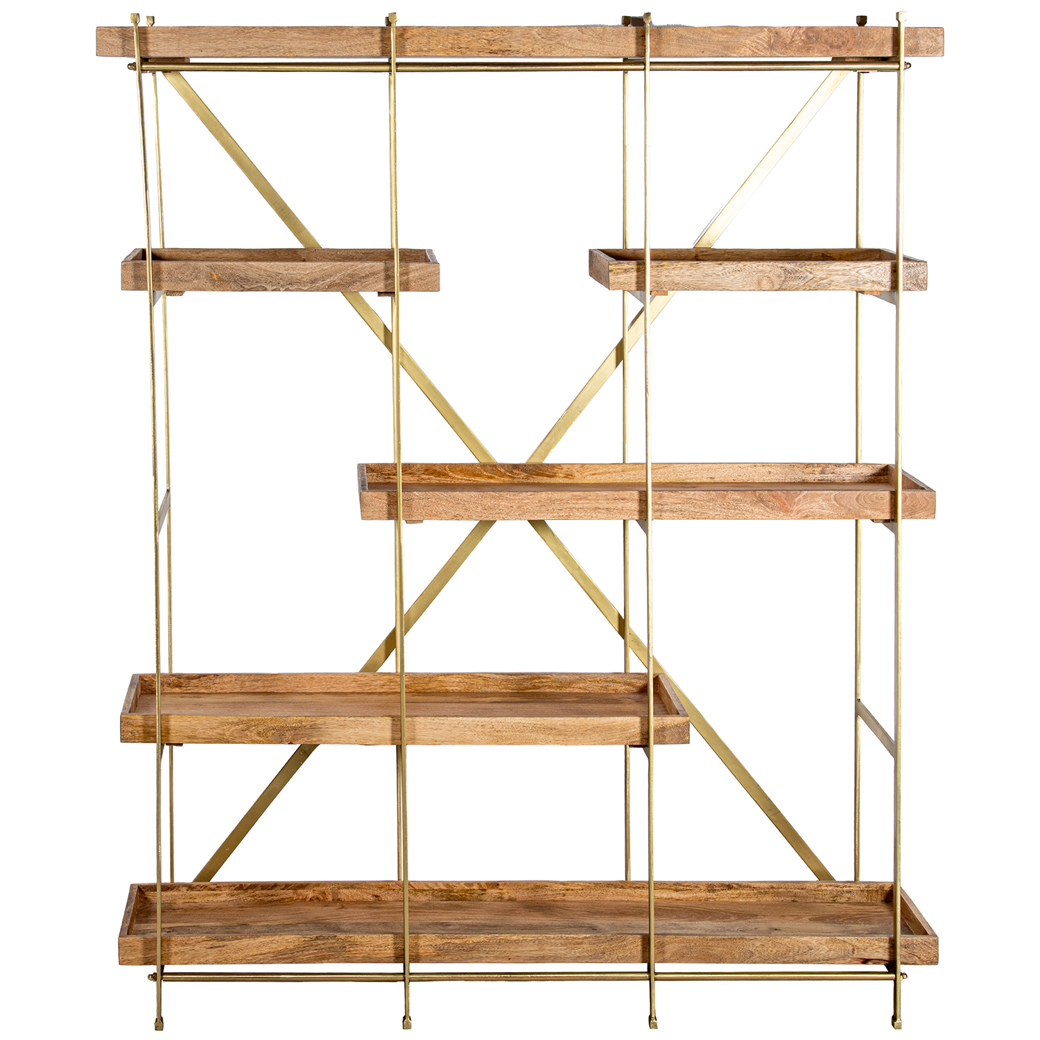 ESTANTERIA METAL DORADO C/BALDAS MADERA MANGO NATURAL _147X43X181CM