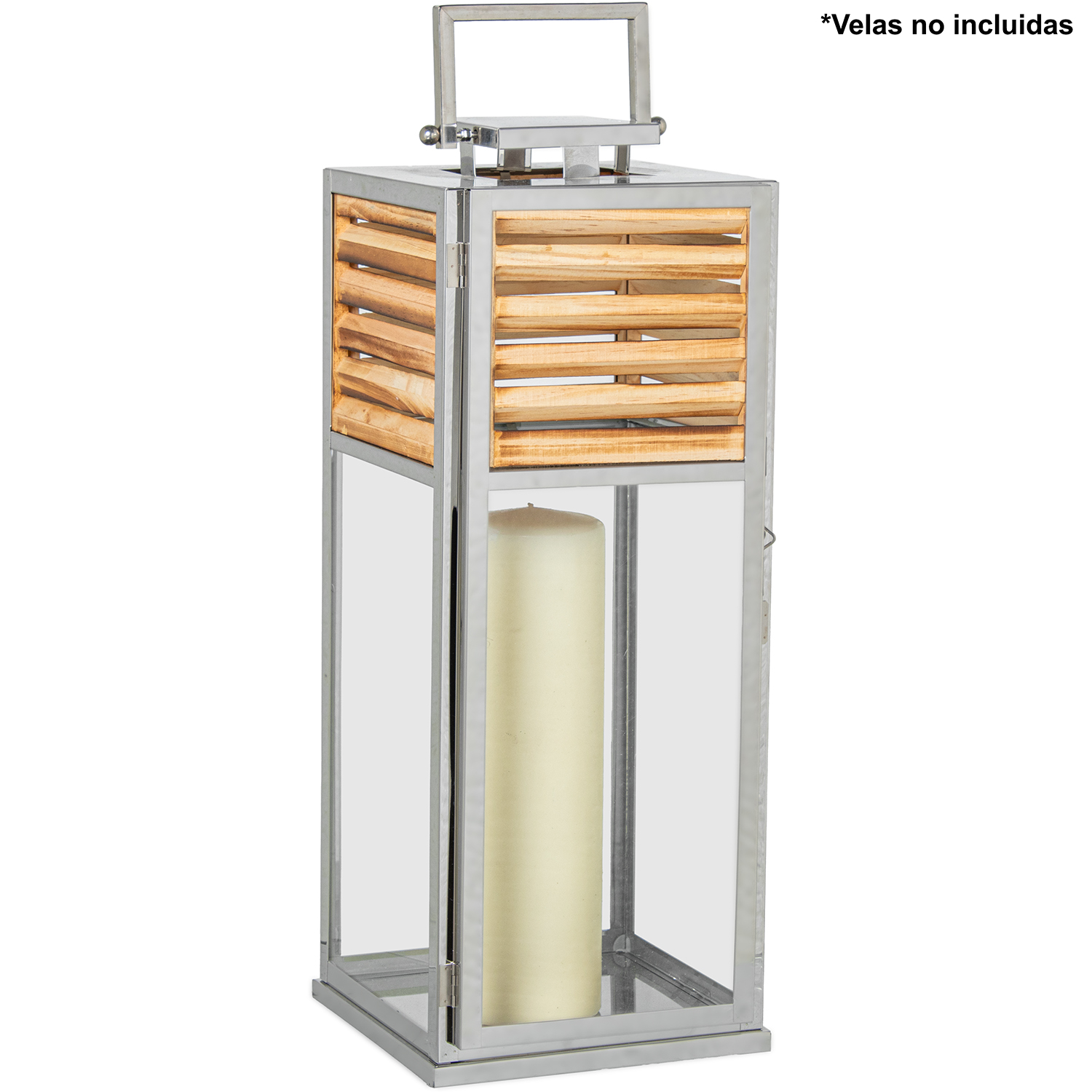 FAROL PORTAVELAS 54CM METAL CROMADO/MADERA _20X21X54CM