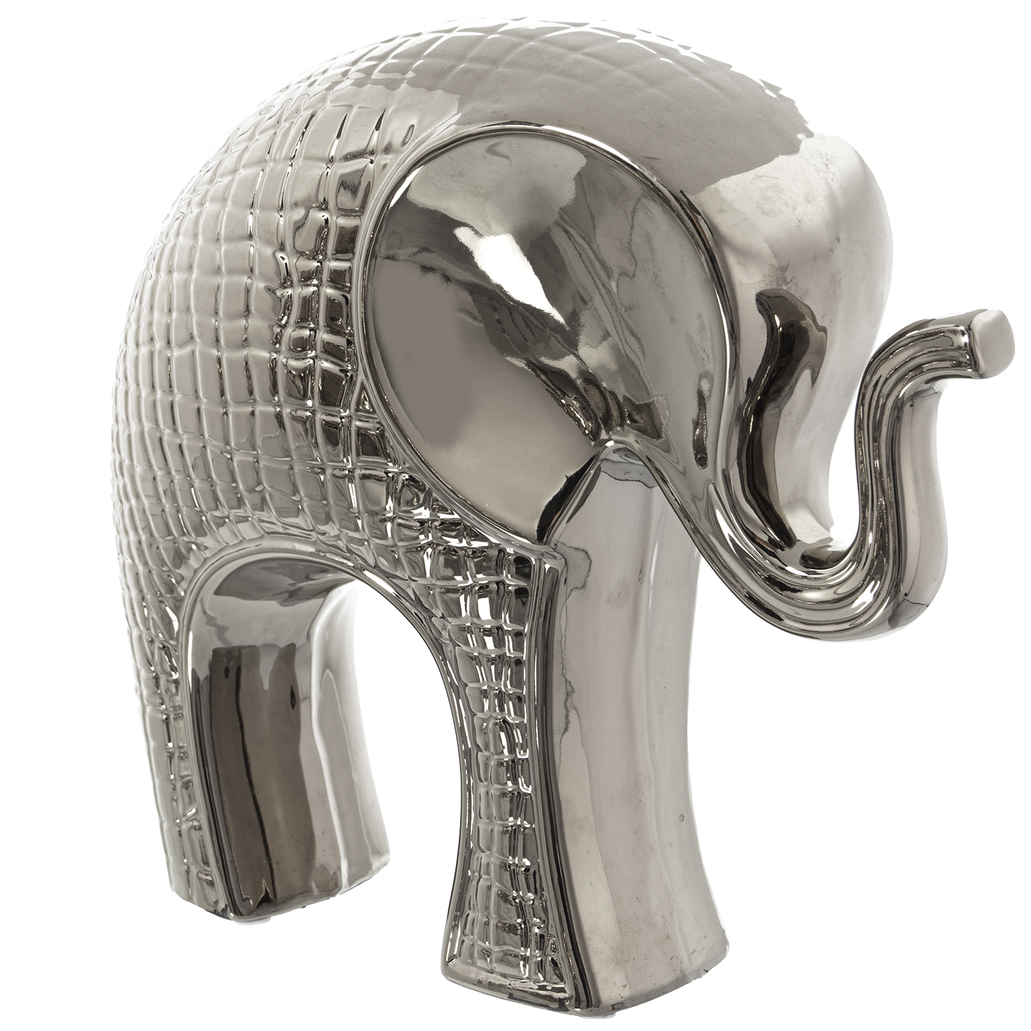 FIGURA ELEFANTE CERÁMICA PLATA _27X11X25CM