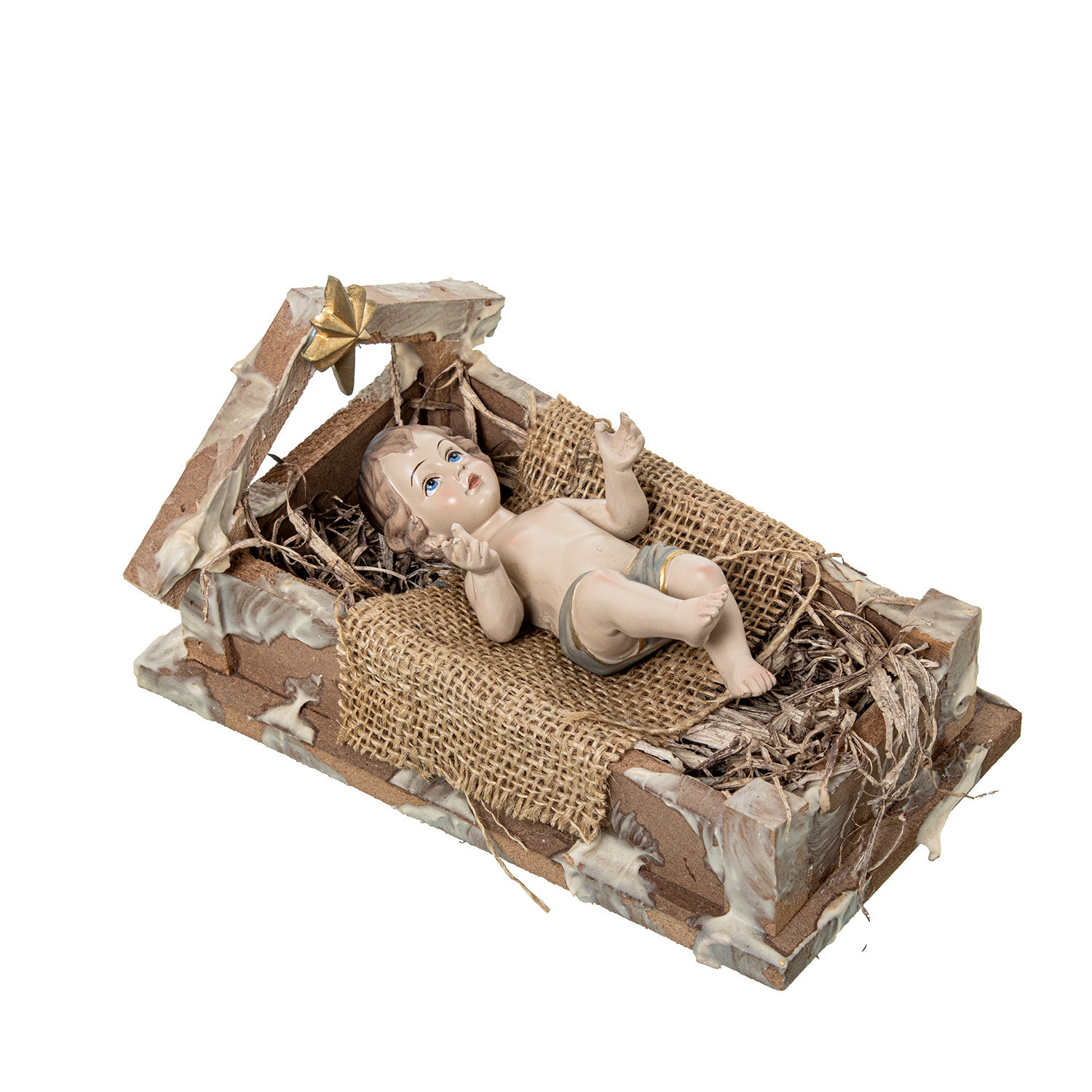 FIGURA RESINA NIÑO JESUS EN PESEBRE 31CM