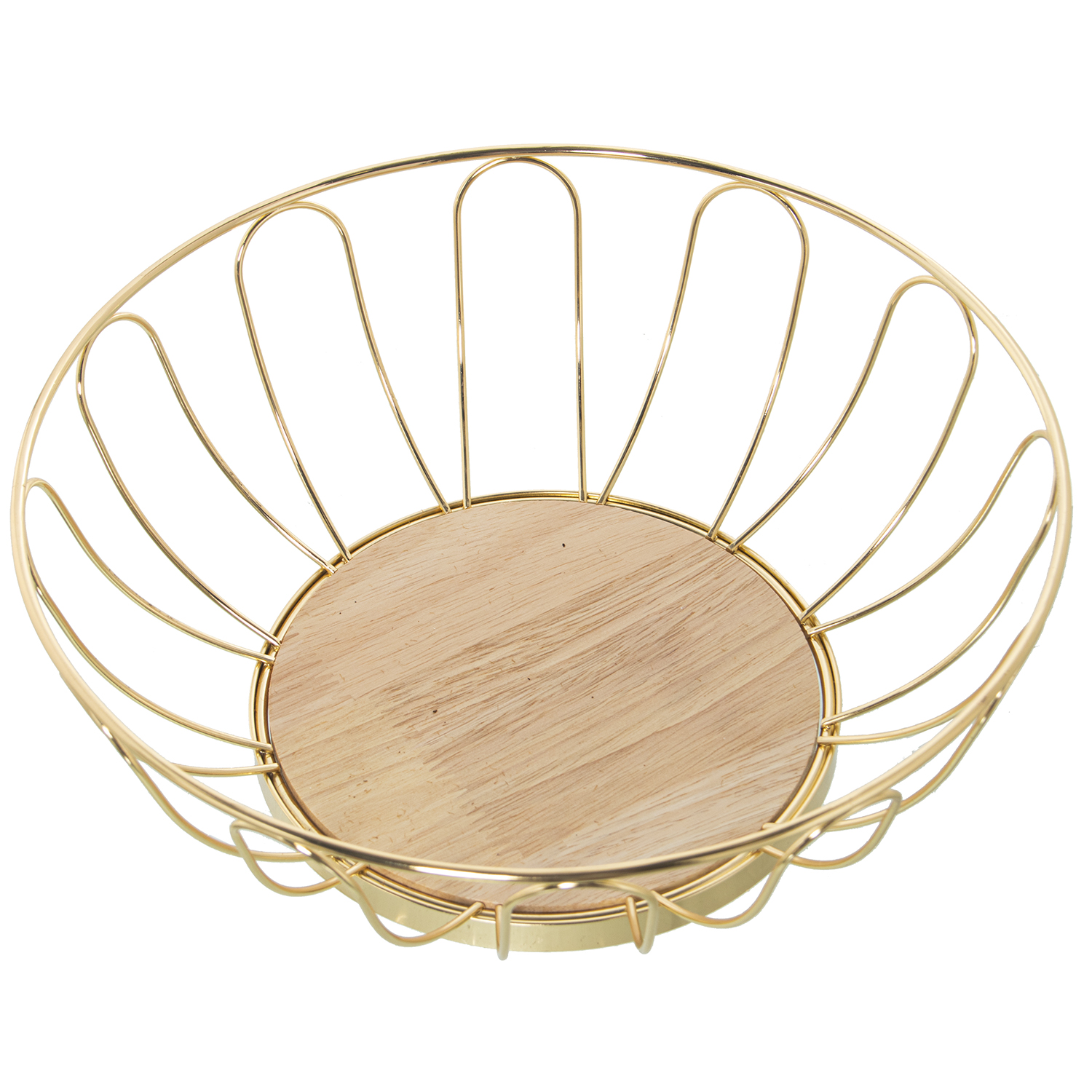 FRUTERO METAL DORADO C/BASE MAADERA ø28X10CM, BASE:ø16,5CM