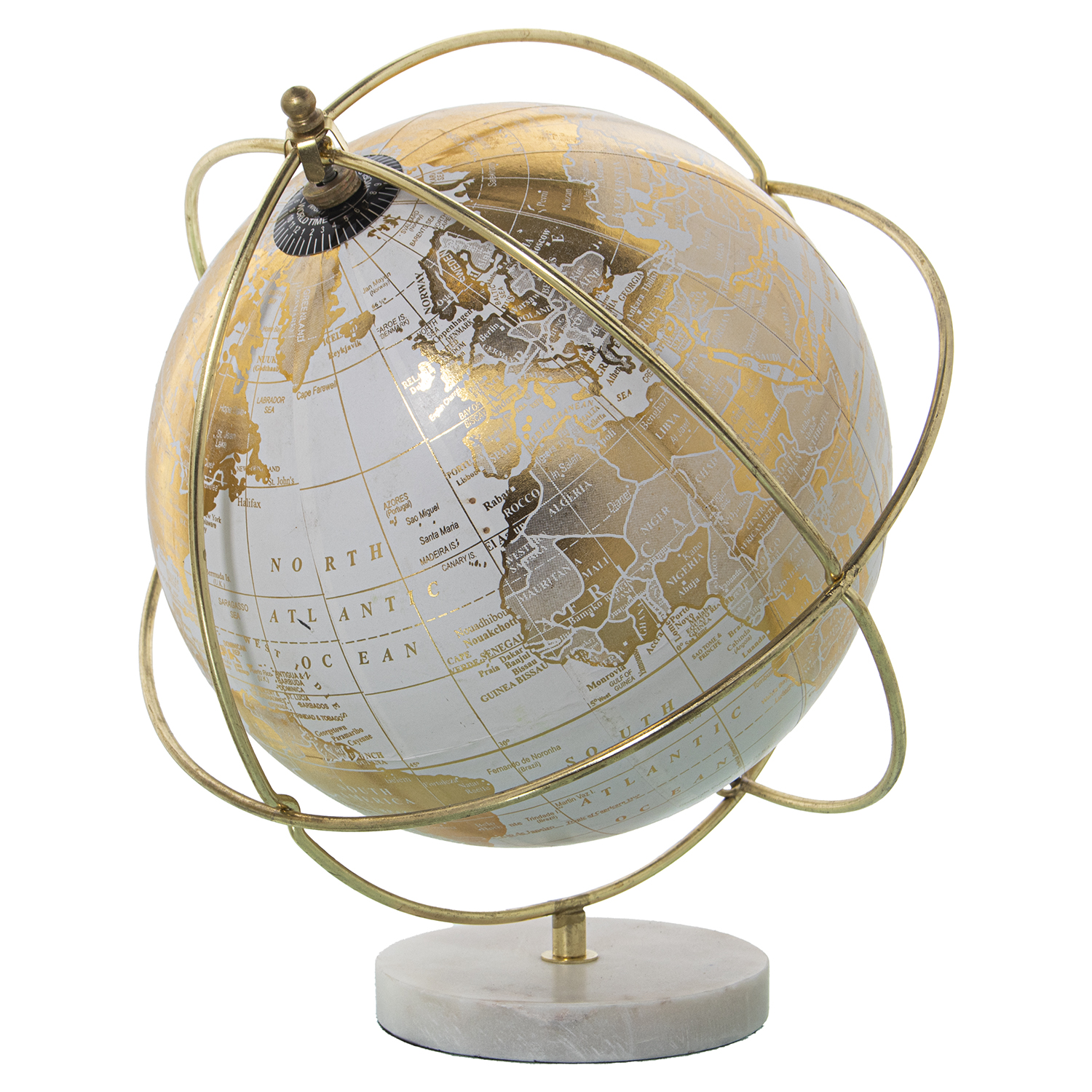 GLOBO TERRÁQUEO ø24CM BLANCO/DETAL/MÁRMOL SOBREMESA