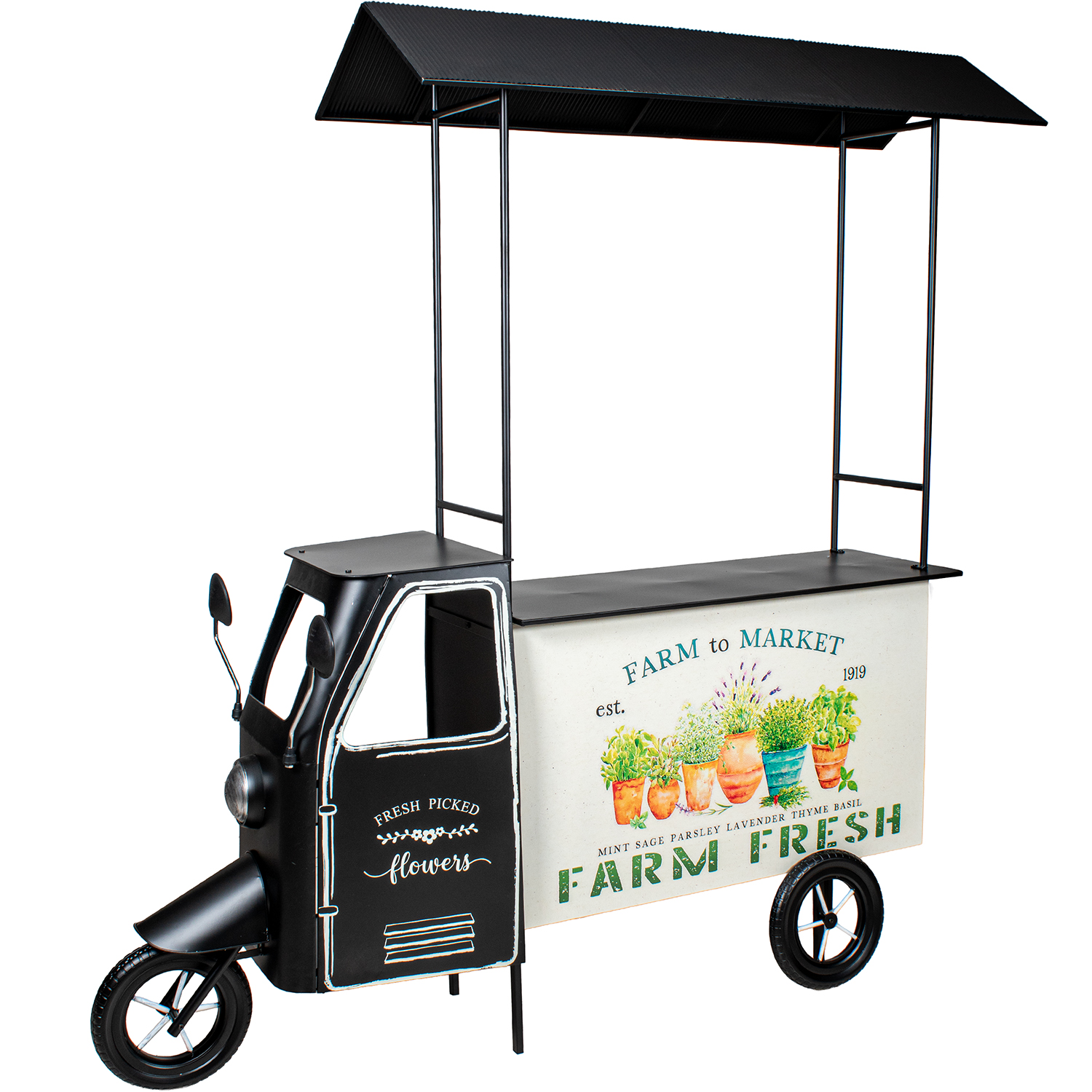 JARDINERA METAL NEGRO MOTOCARRA C/BANDEJA MADERA
