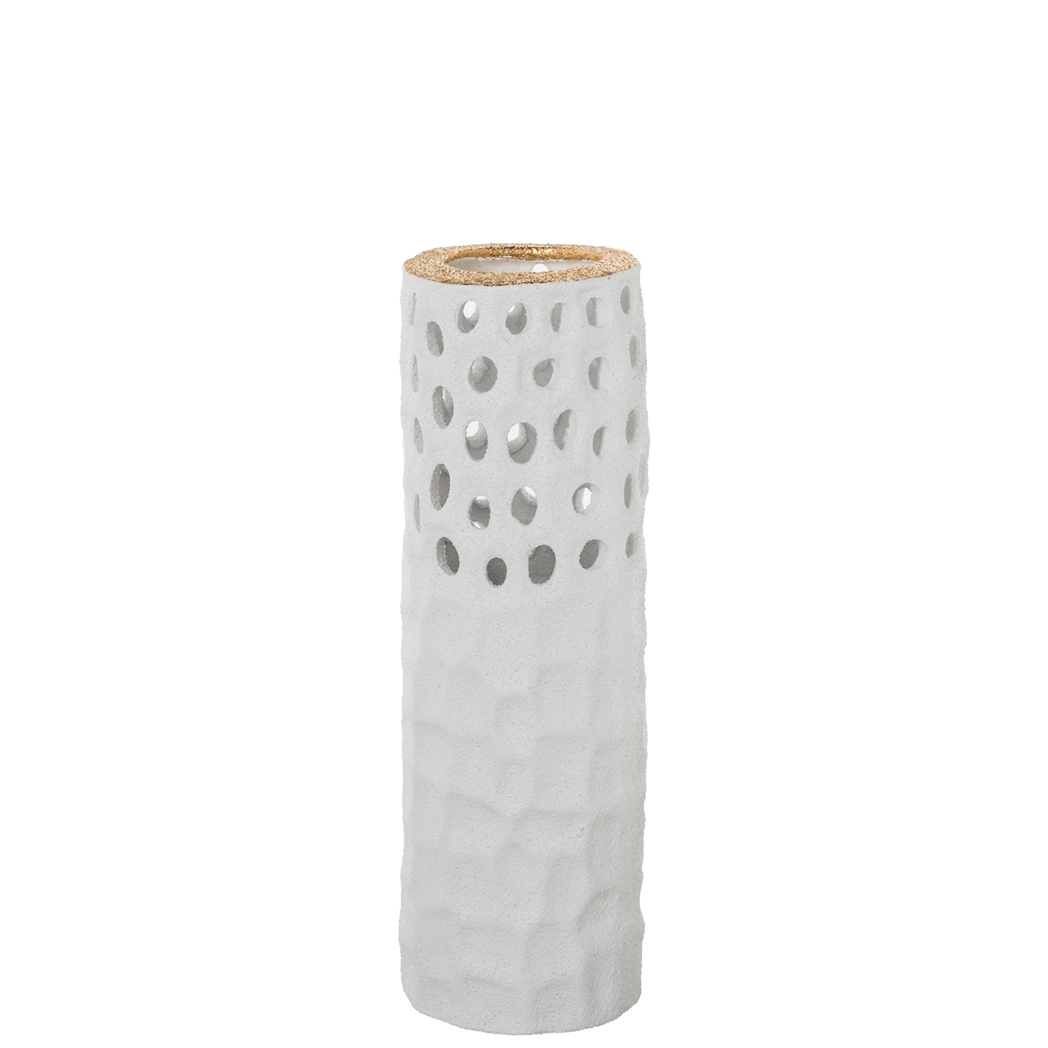 JARRÓN CERÁMICA 34CM CALADO BLANCO ARENA/ORO _ø12X34CM