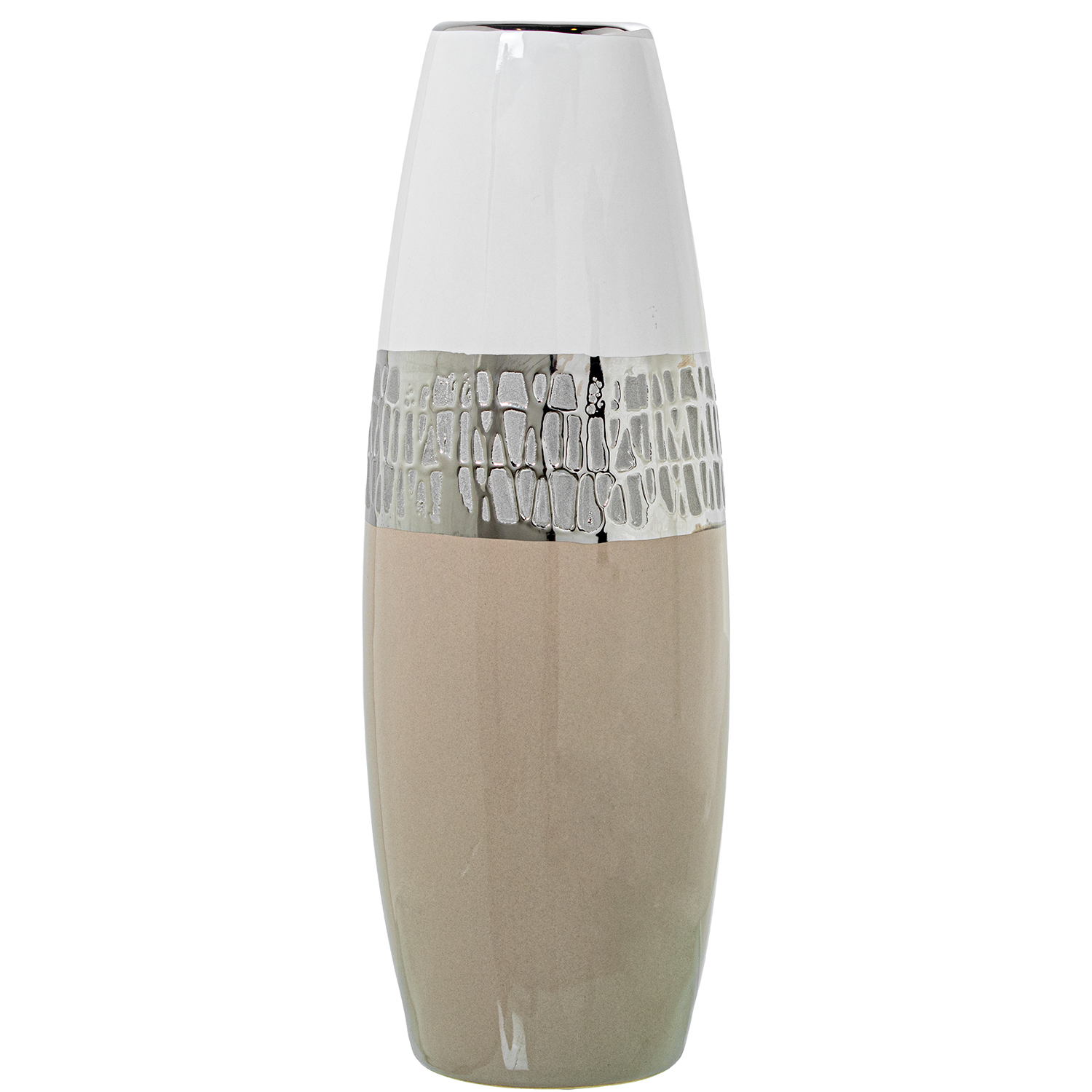 JARRON CERAMICA 36CM BLANCO/PLLANCO/PLATA/BEIGE _ø13X36CM