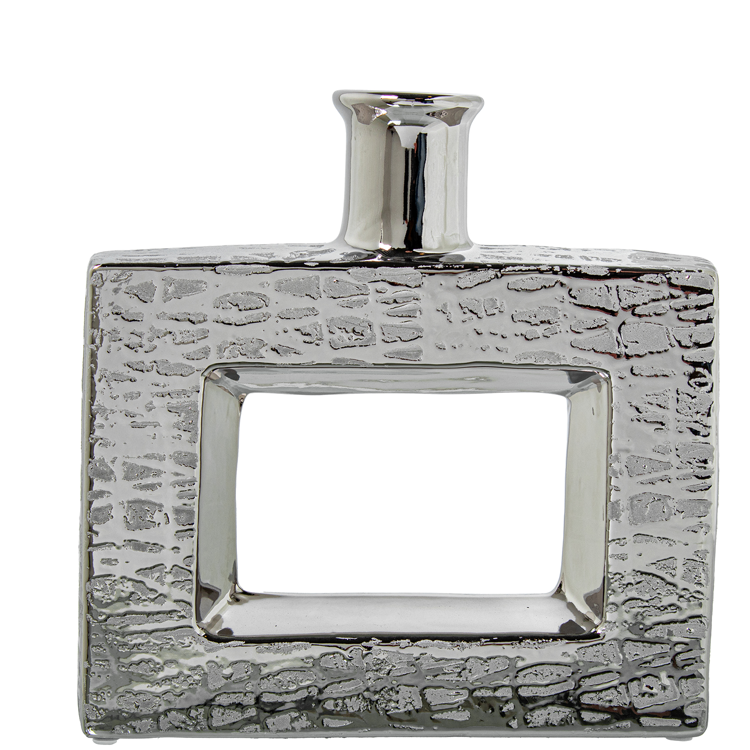 JARRÓN CERÁMICA AGUJERO 24CM PANCO/PLATA/BEIGE _24X6X24CM