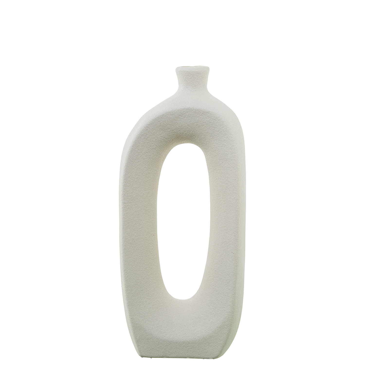 JARRON CERAMICA AGUJERO 26CM CREMA _12X6X26CM