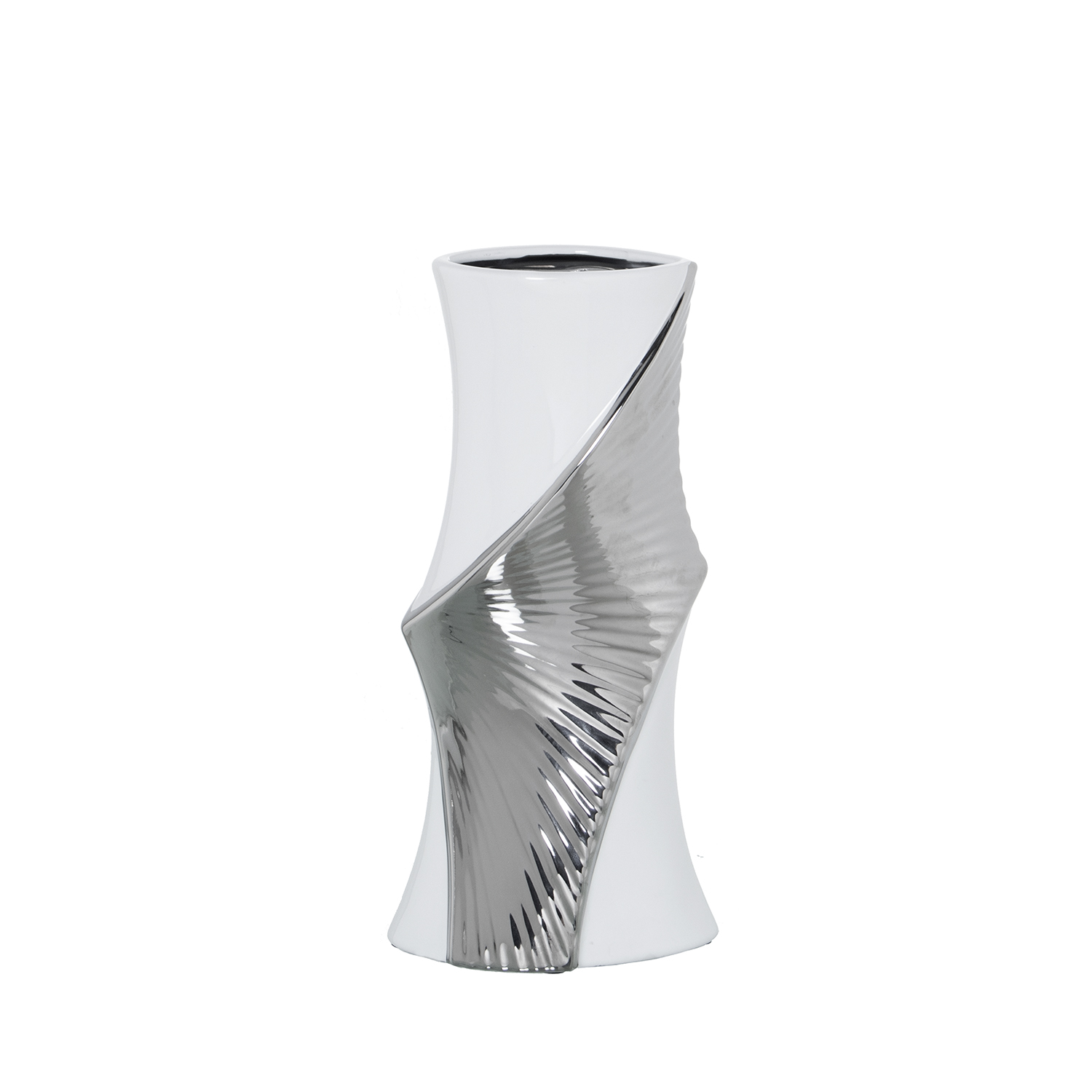 JARRÓN CERÁMICA BLANCO/PLATEAD 16X12X32CM