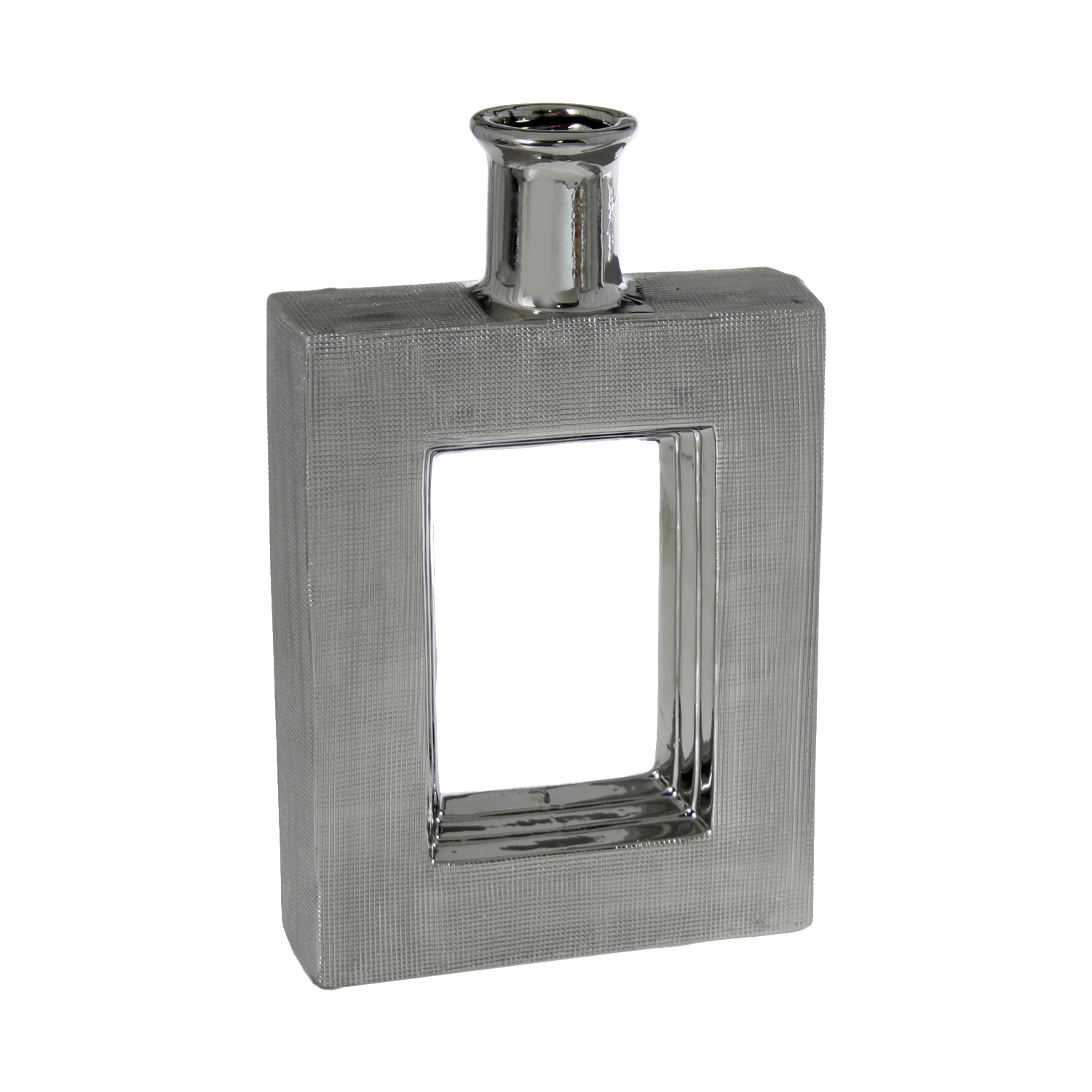 JARRÓN CERÁMICA PLATEADA _18,5X6X30CM