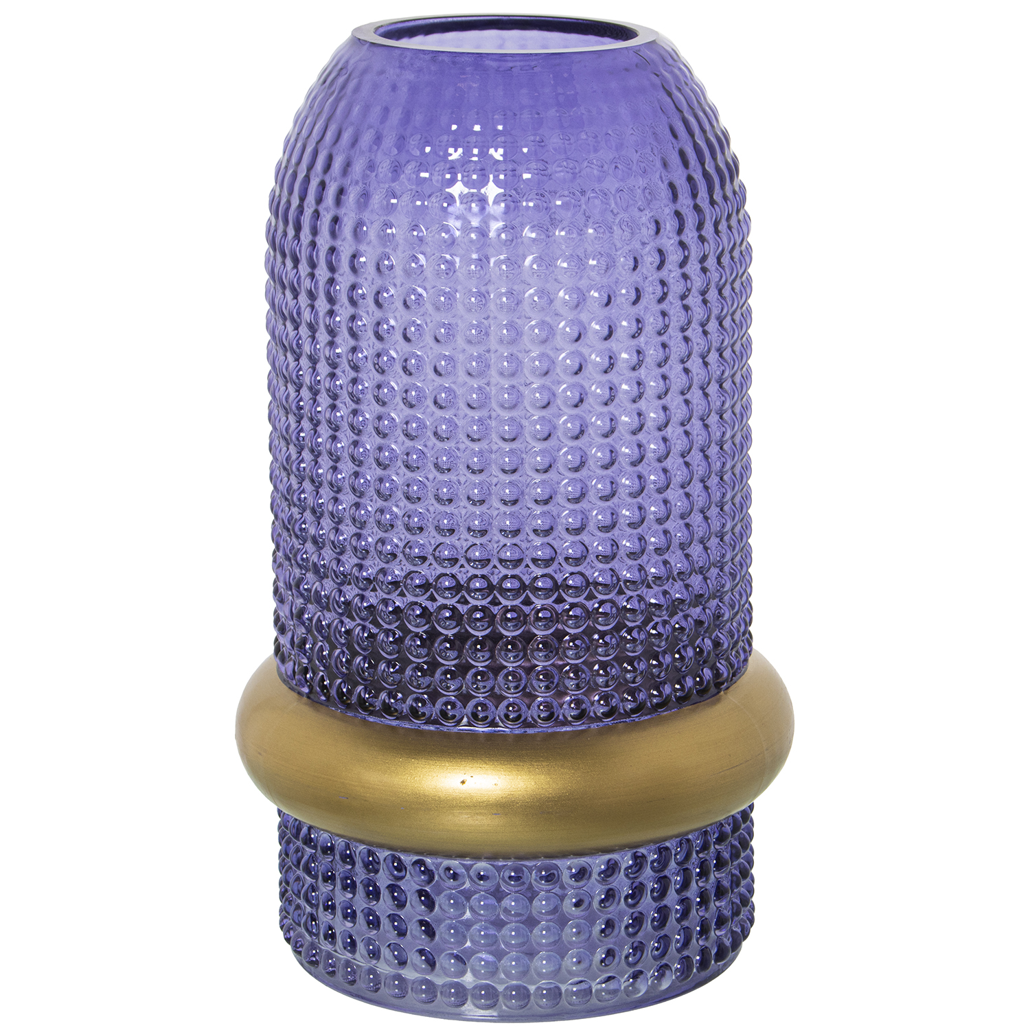 JARRÓN CRISTAL AZUL ARO DORADO ø15X25CM, BOCA:ø7,5CM