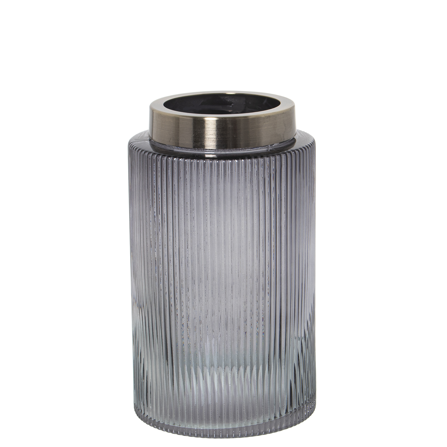 JARRÓN CRISTAL GRIS BORDE META ø12X20CM, BOCA METAL:ø9CM