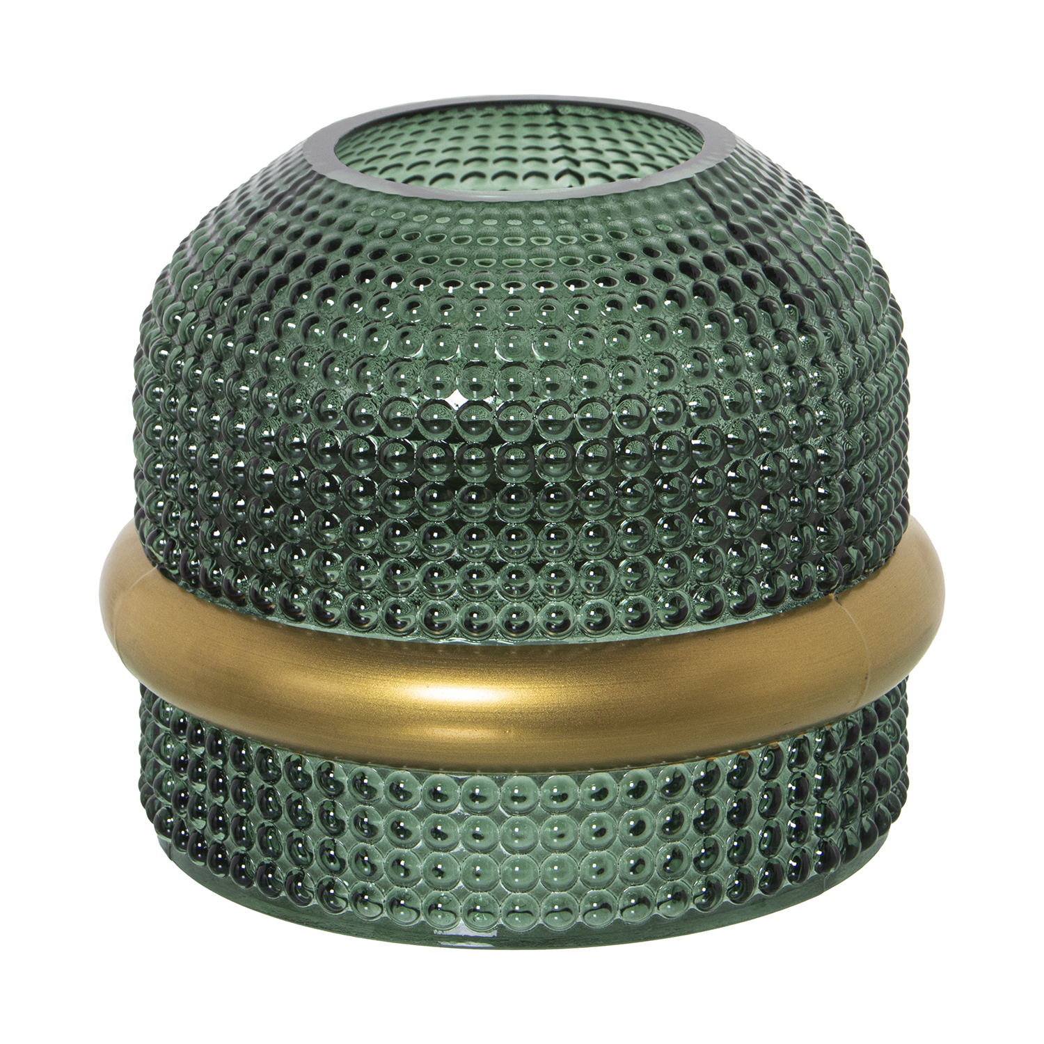 JARRÓN CRISTAL VERDE ARO DORAD ø17X15CM, BOCA:ø7,5CM