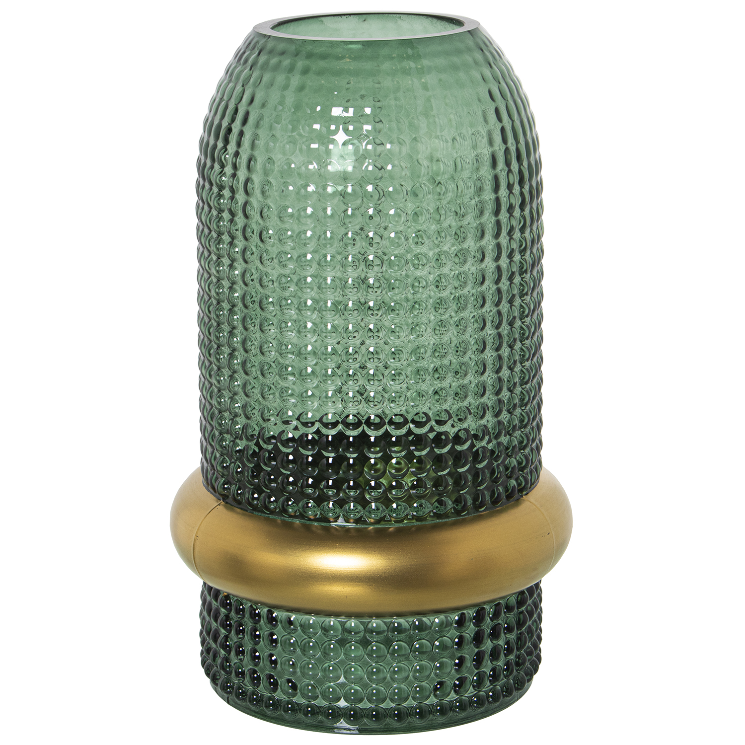 JARRÓN CRISTAL VERDE ARO DORADO ø15X25CM, BOCA:ø7,5CM