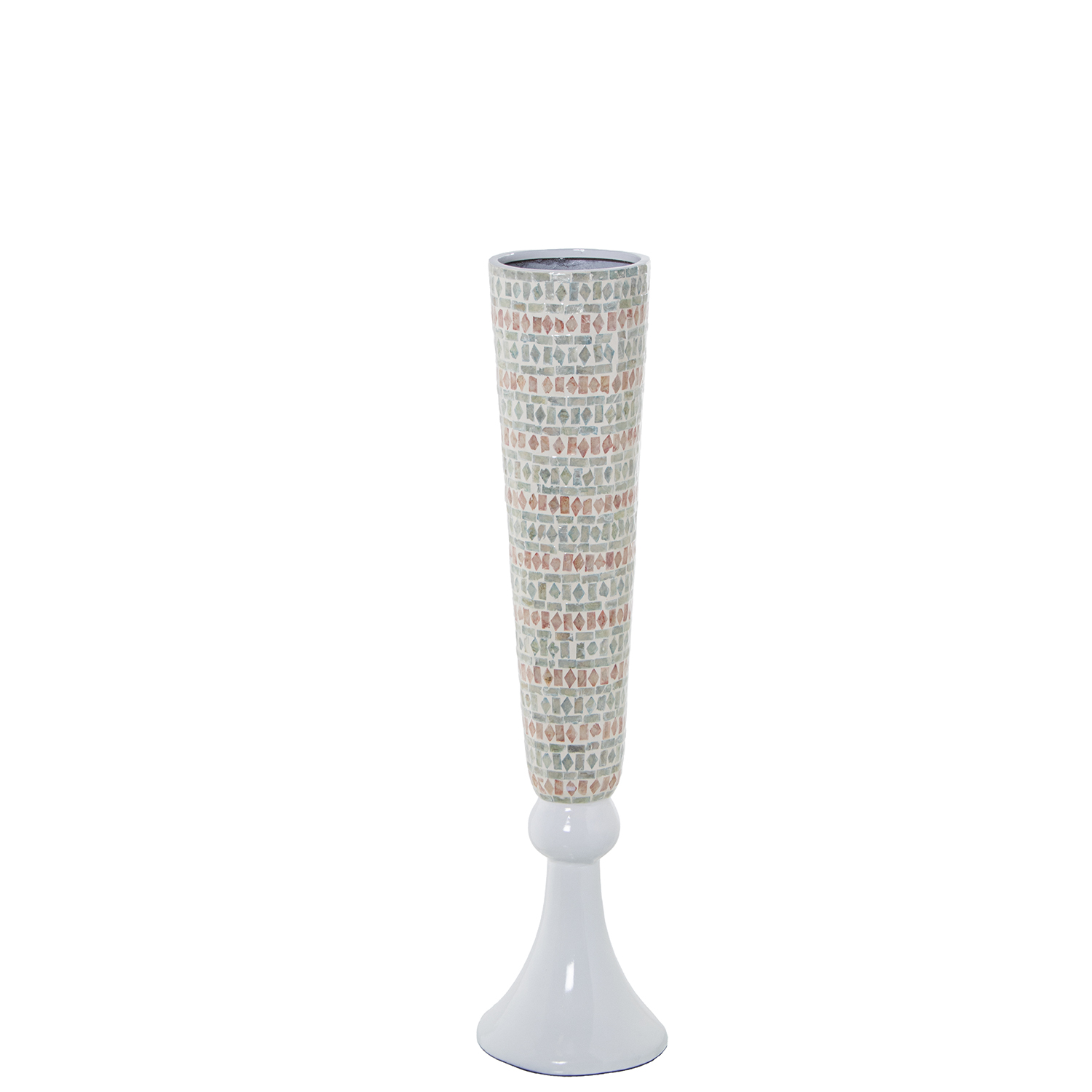 JARRÓN NÁCAR 91CM C/PIE RESINAA BLANCA _ø17X91CM