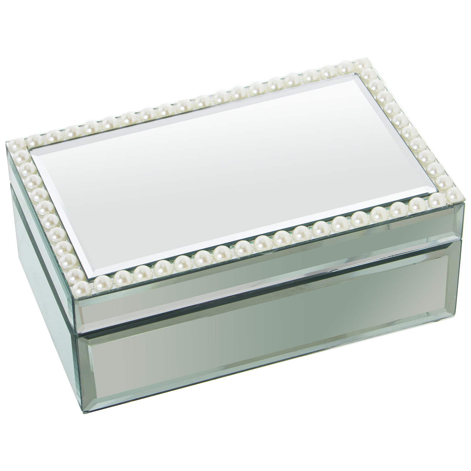 JOYERO CRISTAL/MADERA ESPEJO BLANCO/NEGRO 21X13X9CM