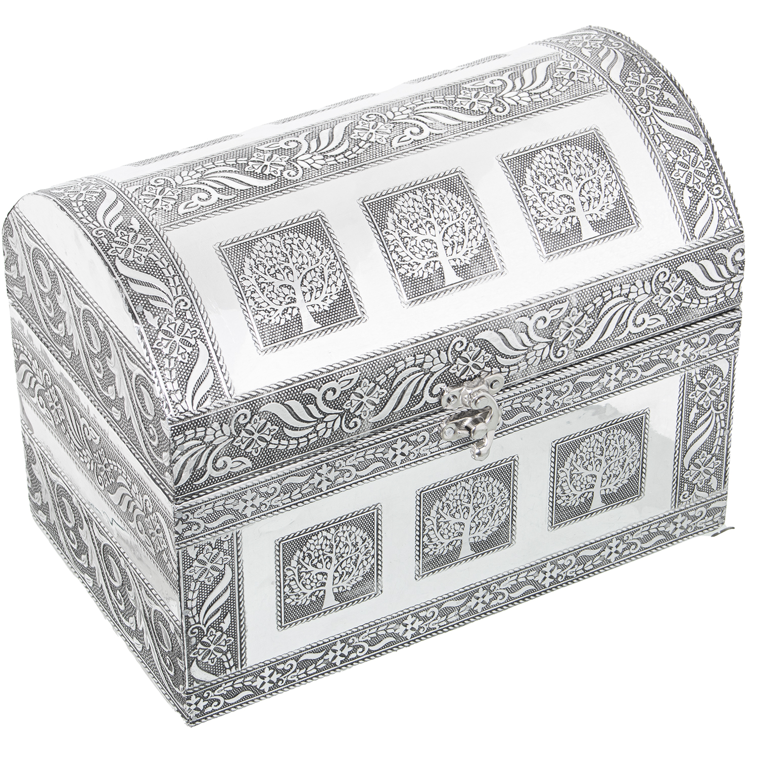 JOYERO METAL BAÚL PLATEADO ÁRB _25X15X18CM
