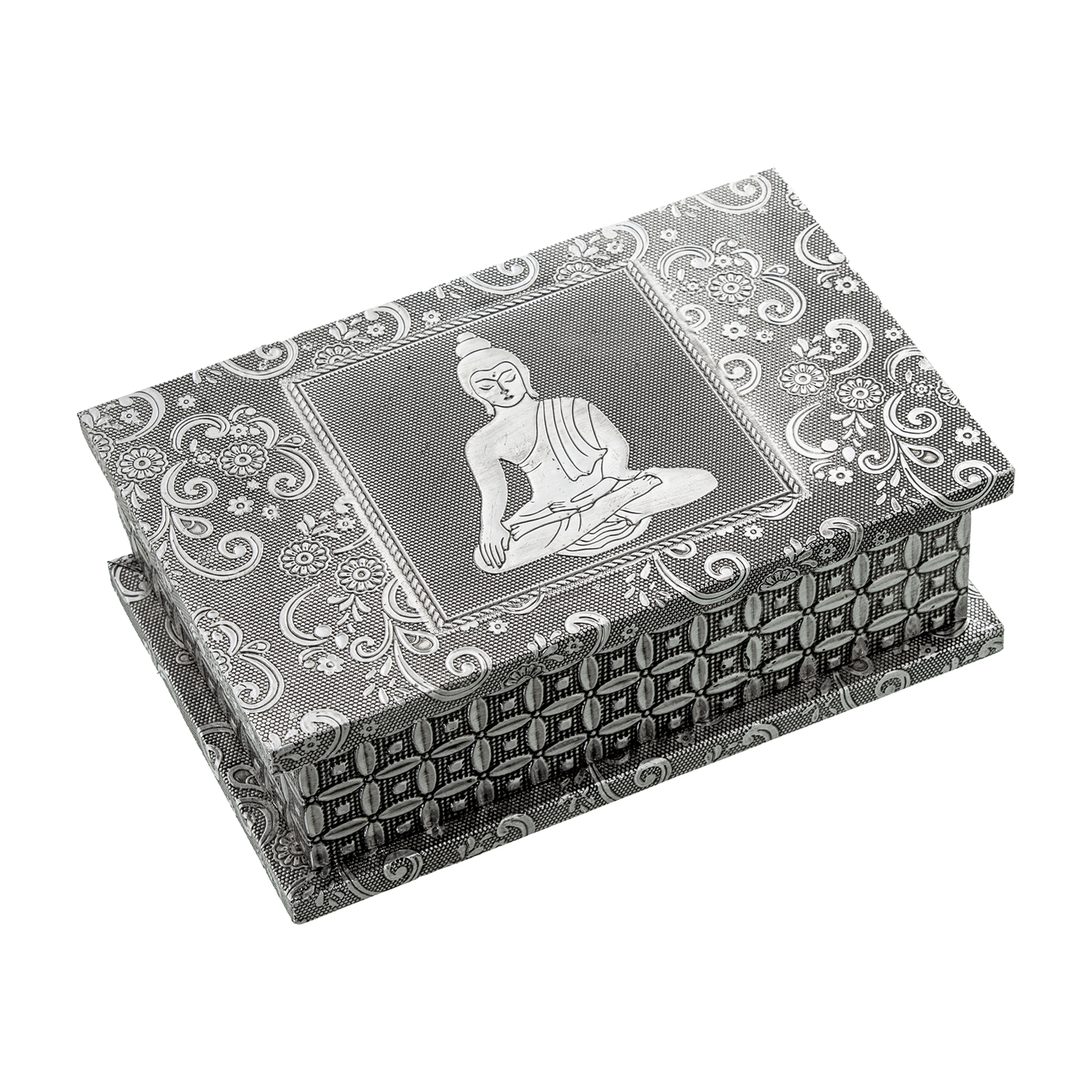 JOYERO METAL PLATEADO LIBRO DEDECO. BUDA _20X13X6,5CM