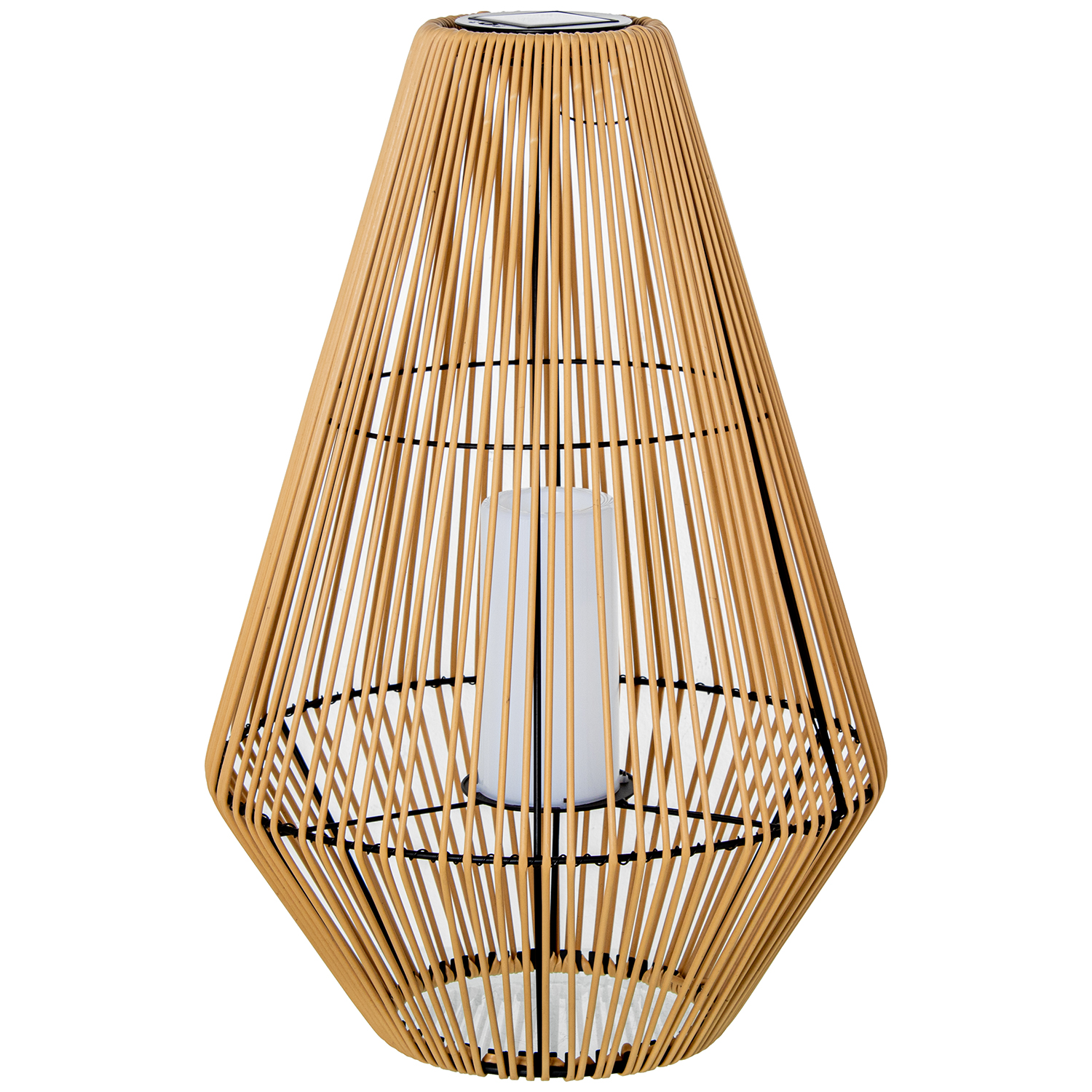 LÁMPARA SOLAR 69CM PIE HIERRO//ASA HIERRO/PP+PVC C/VELA LED _ø46X69CM