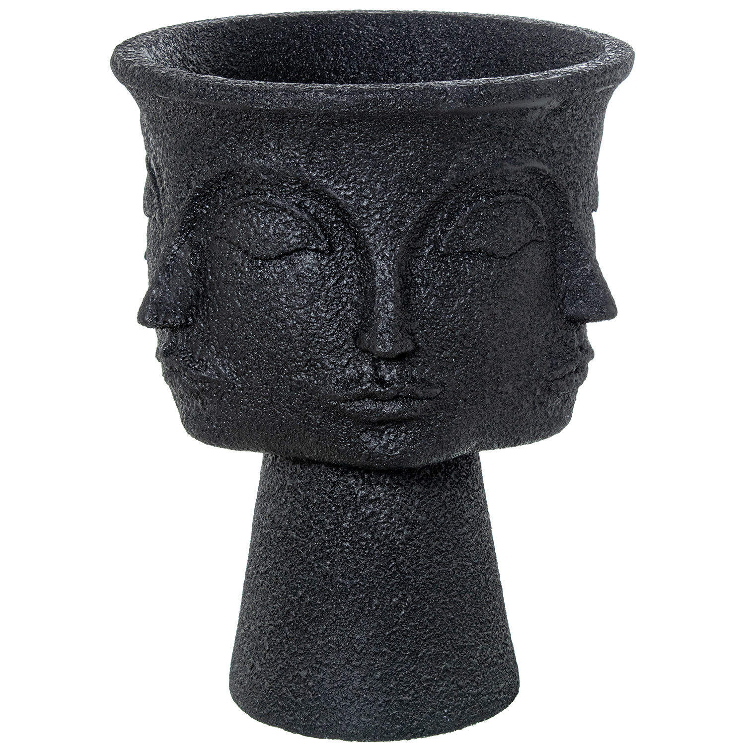 MACETERO 3 CARAS RESINA NEGRO GRANULADO _ø49X62CM HUECO:ø18/ø41X17CM