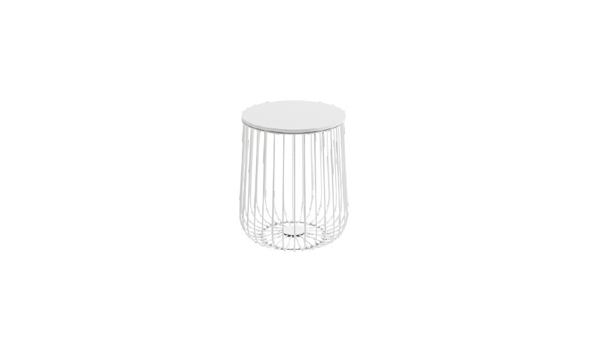 Mesa auxiliar redonda de 35×42 cm de diámetro con estructura metálica y sobre de tablero, modelo ïndico