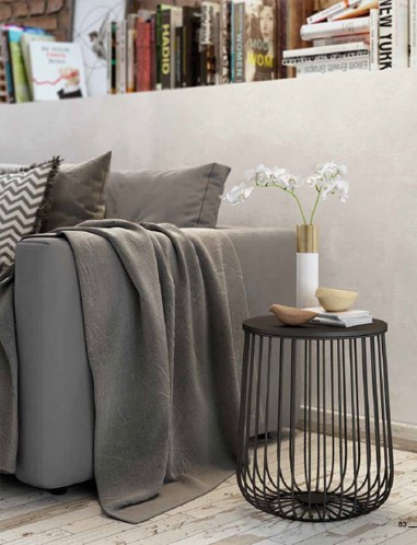 Mesa auxiliar redonda de 35cm de diámetro con estructura metálica