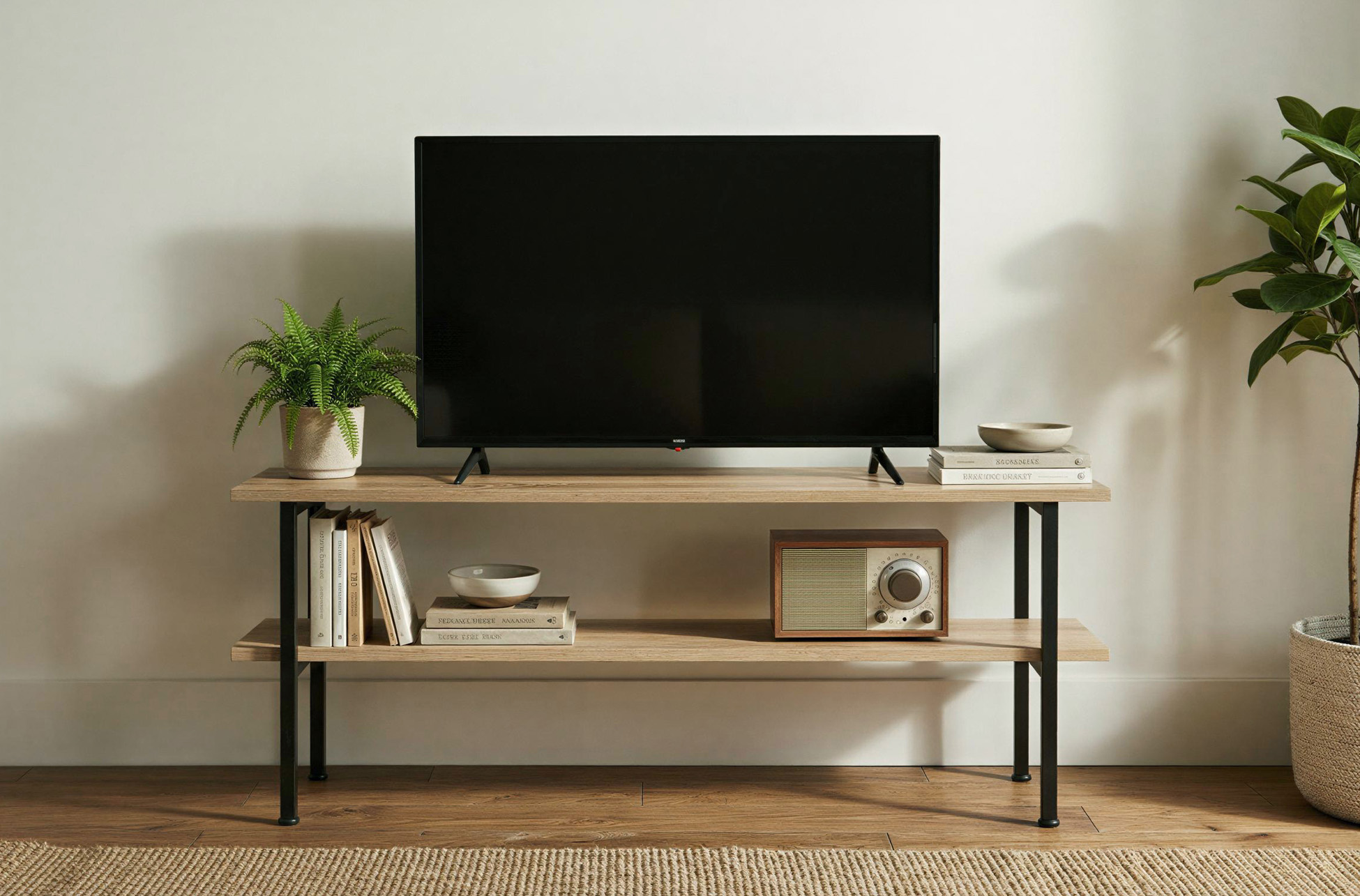 MESA AUXILIAR / TV DECK 120 x 30 CM OAK / NEGRO Mesa auxiliar / TV con estante inferior.