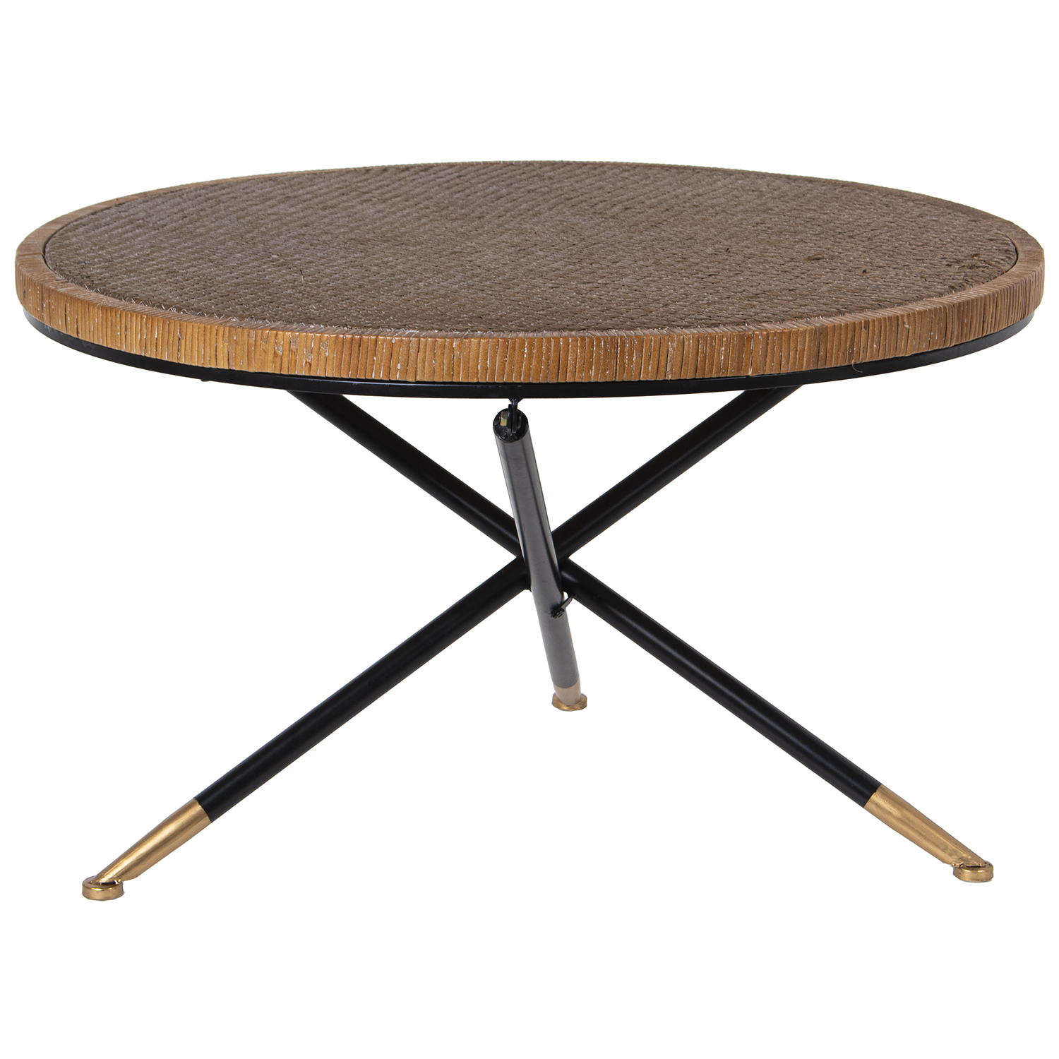 MESA CENTRO MADERA C/BORDE TRENZADO, PATAS DE METAL _ø80X46CM, MADERA DM