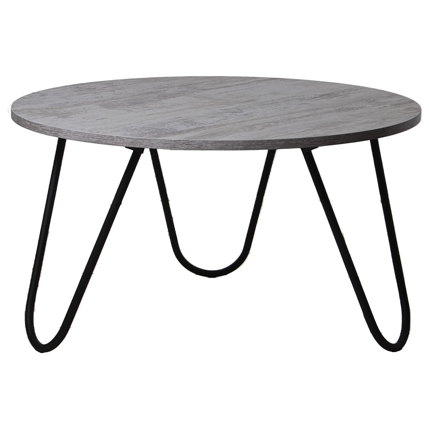 MESA CENTRO MADERA PATAS METALDO, TABLERO BISELADO _ø80X44CM