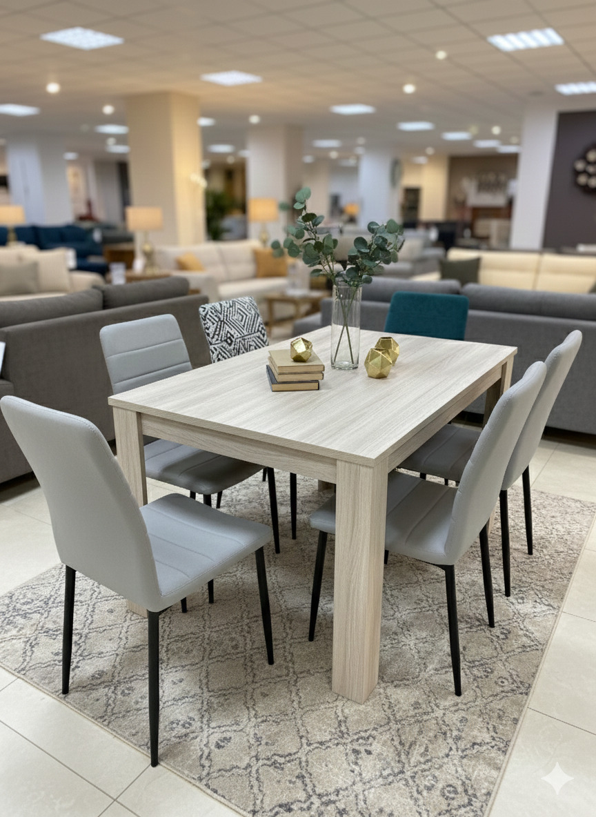 Mesa comedor extensible CD996 disponible en Muebles Hermógenes Cartagena. Incluye mesa extensible estilo nórdico madera clara. Diseño funcional, robusto y preparado para uso diario con disponibilidad inmediata en outlet. Medidas: 140×90 cm + extensible 60 cm