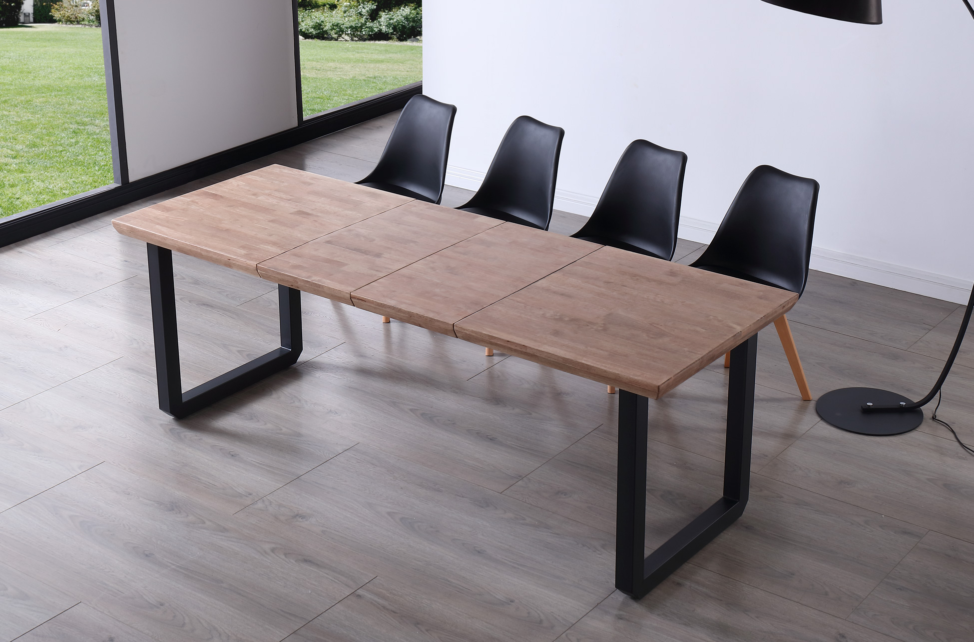 MESA COMEDOR EXTENSIBLE ROMA 140 – 180 – 220 x 80 CM ROBLE HONEY / NEGRO. Tapa extensible en madera de roble acabado chaflán.