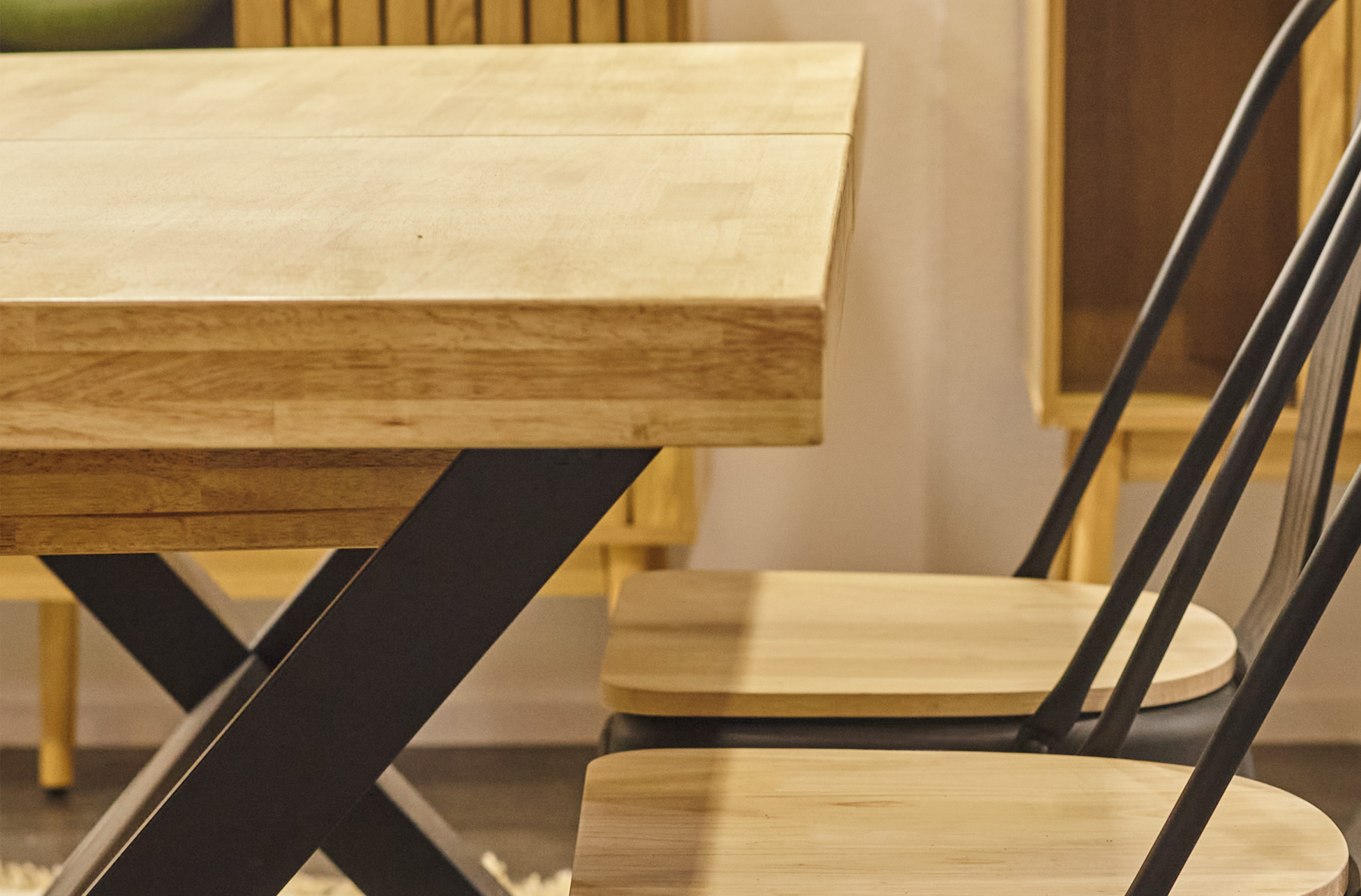 MESA COMEDOR EXTENSIBLE X-LOFT 140 – 180 – 220 x 90 CM ROBLE NORDISH / NEGRO. Tapa y extensibles en madera con acabado en chapa de roble nordish.