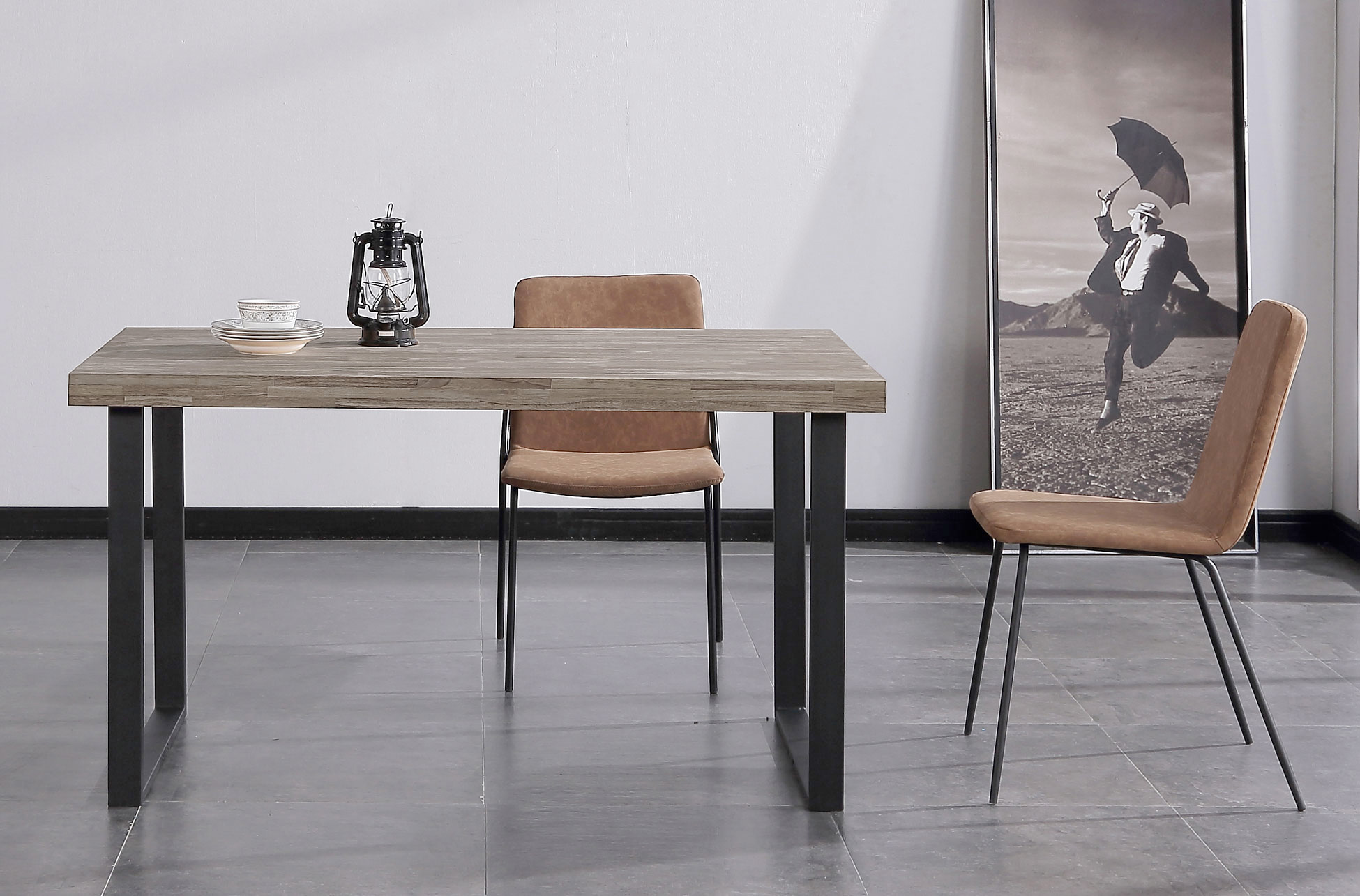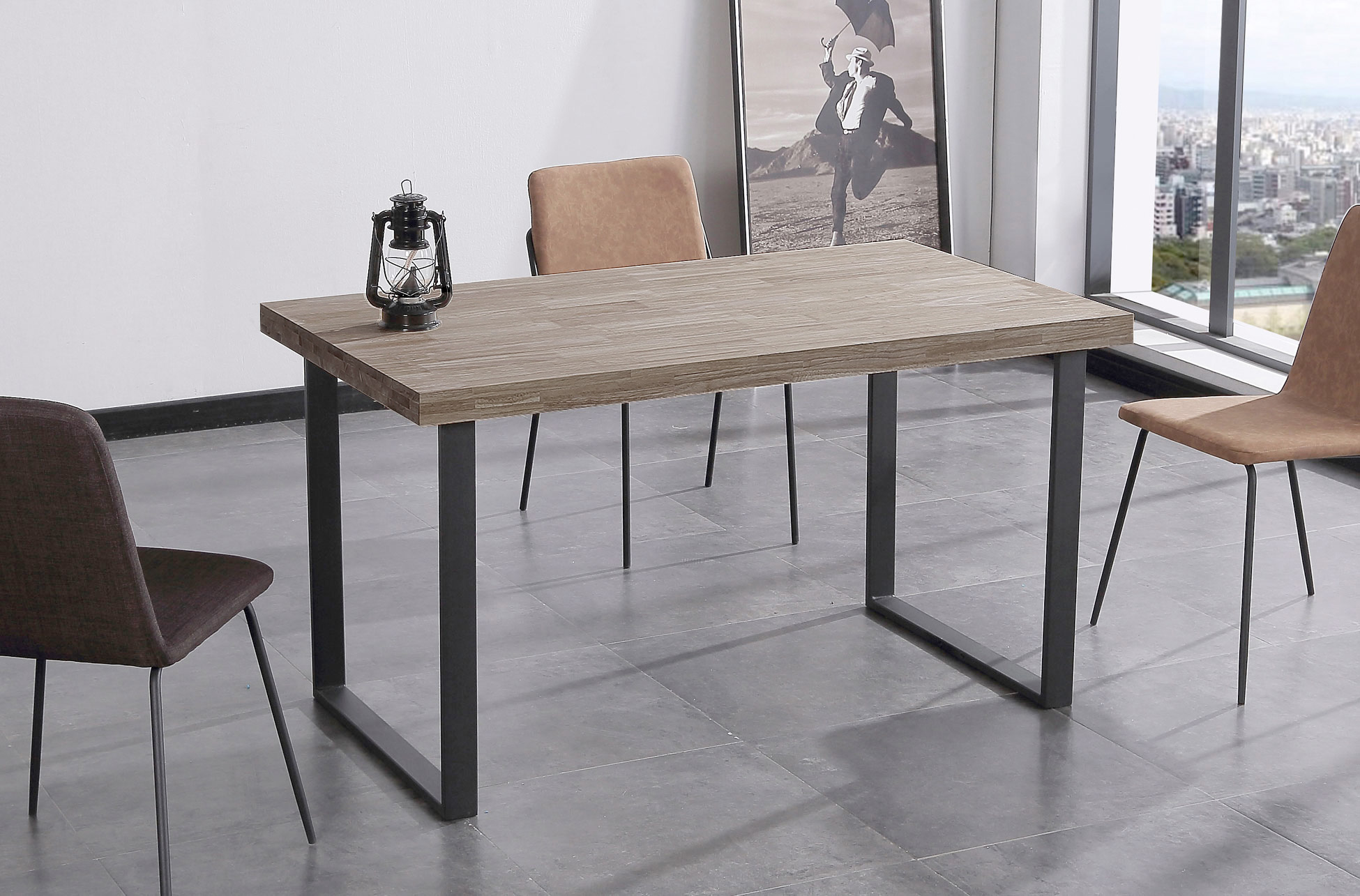 MESA COMEDOR FIJA NATURAL 140 x 80 CM ROBLE AMERICAN / NEGRO.