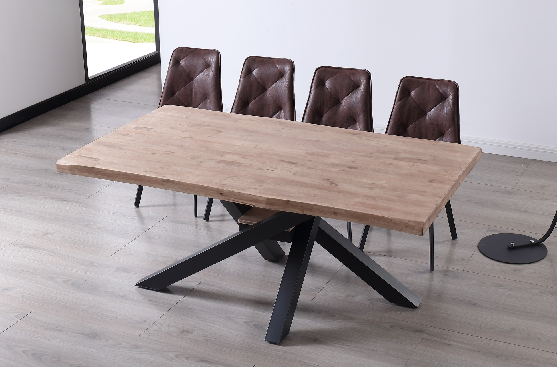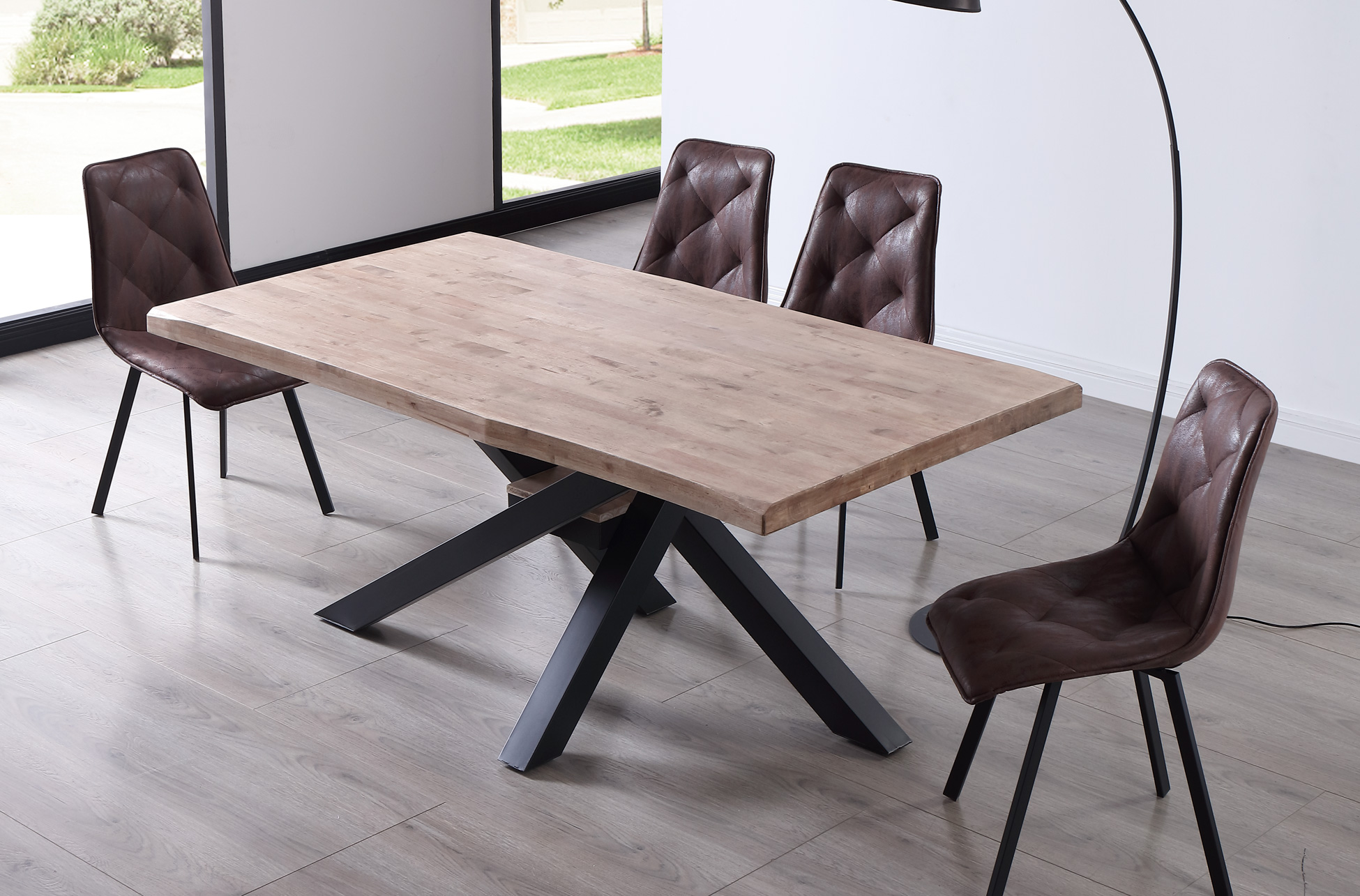 MESA COMEDOR FIJA XENA 180 x 100 CM ROBLE HONEY / NEGRO TAPA CON FORMA. Tapa con formas en madera de roble.