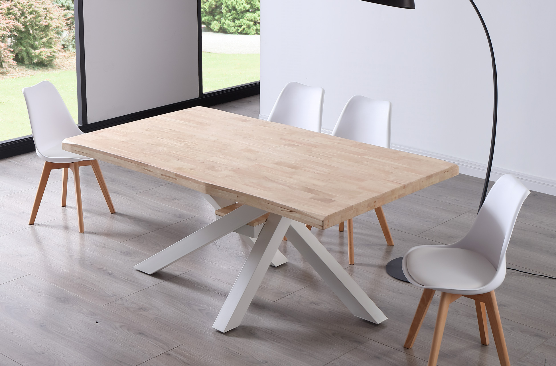 MESA COMEDOR FIJA XENA 180 x 100 CM ROBLE NORDISH / BLANCO TAPA CON FORMA. Tapa con formas en madera de roble.