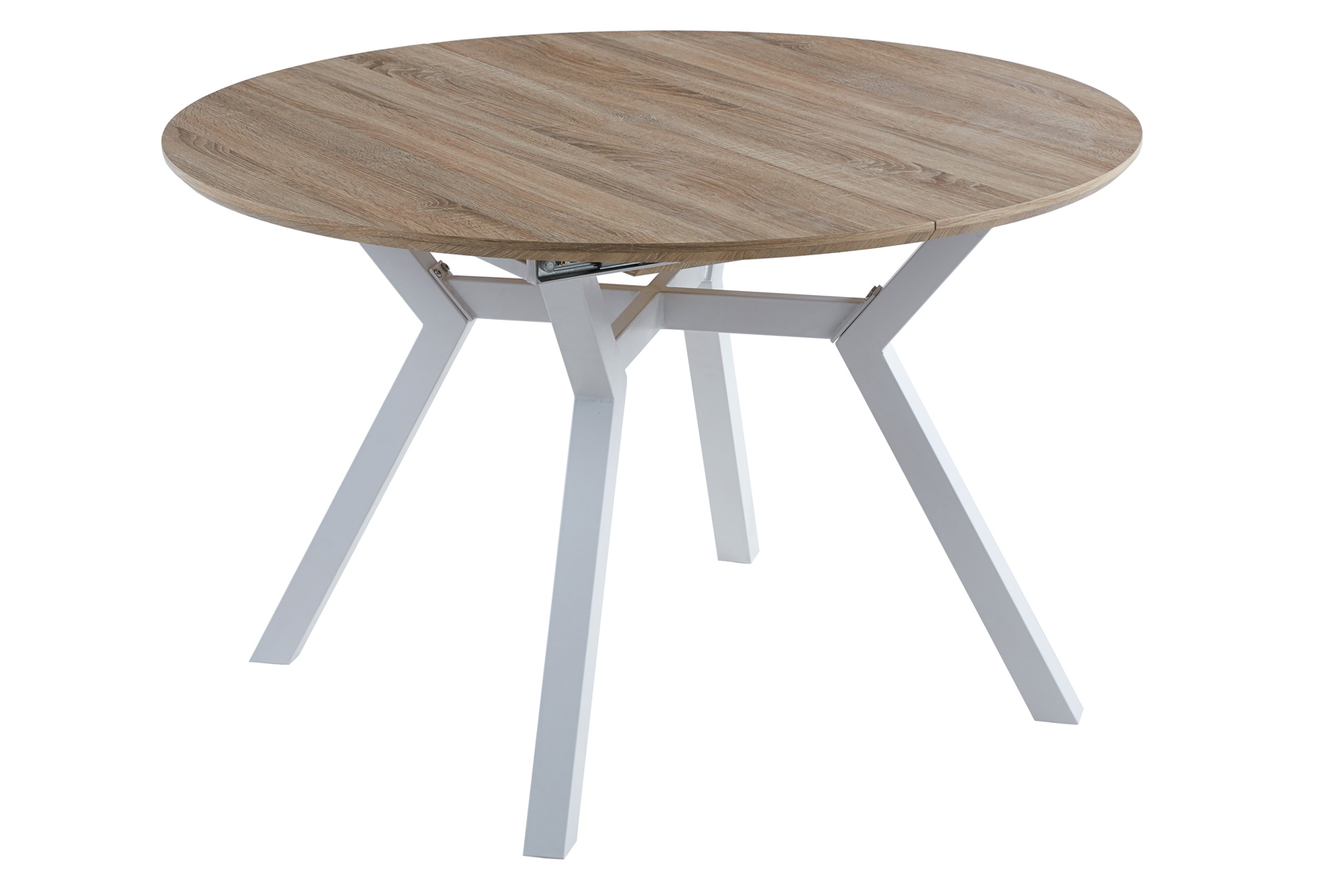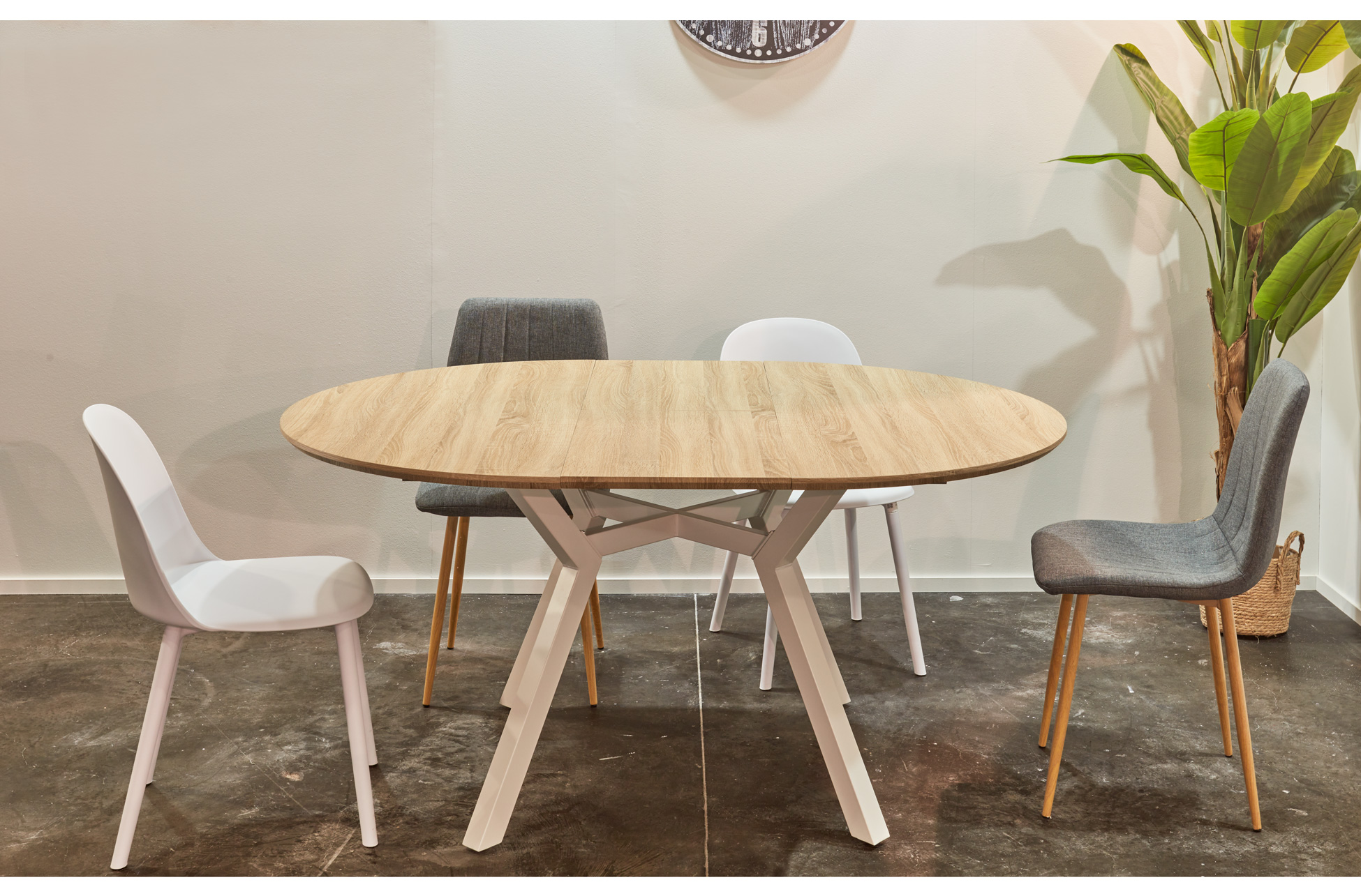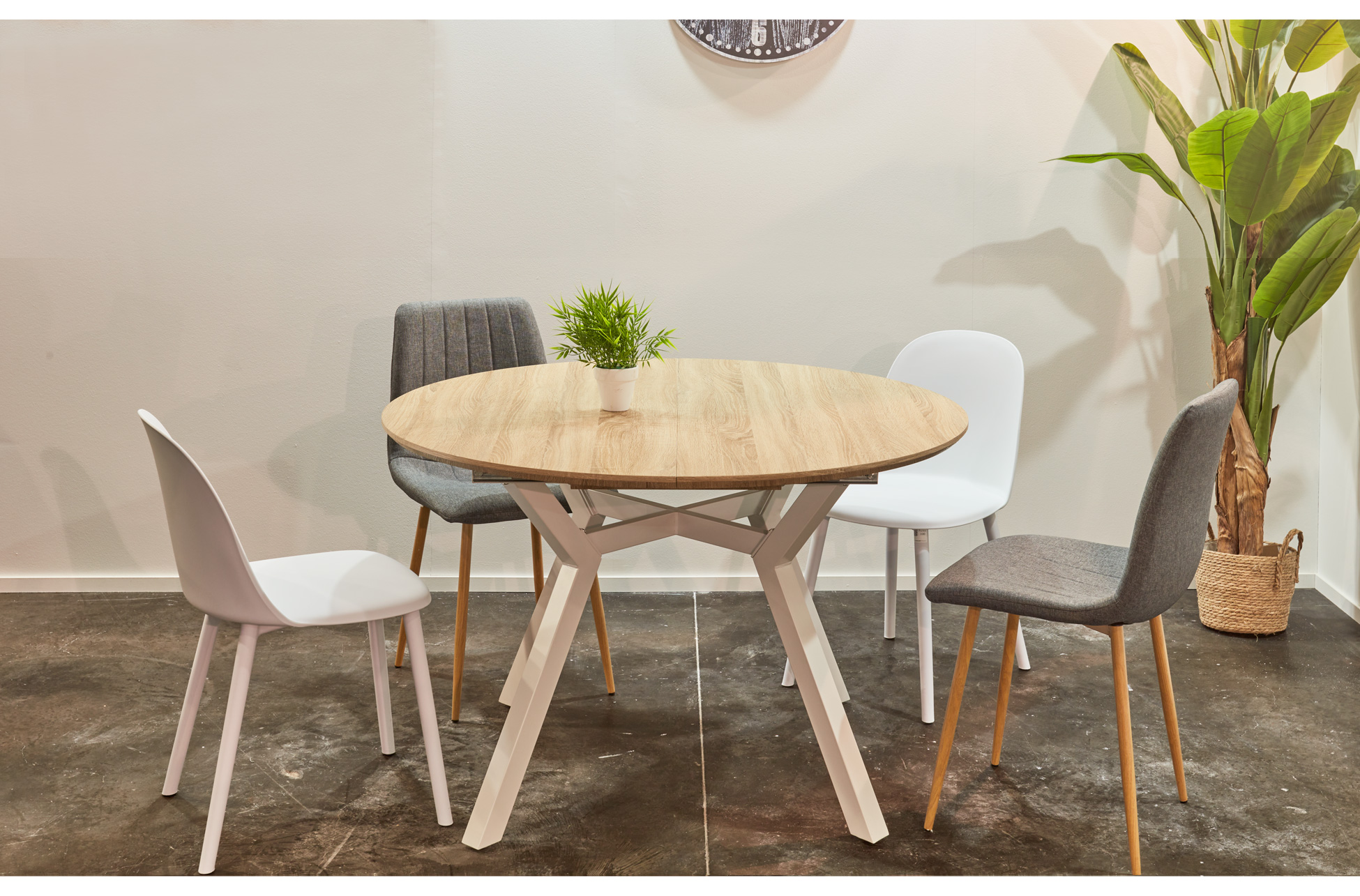 MESA COMEDOR REDONDA EXTENSIBLE DELTA 120 – 160 CM OAK / BLANCO.