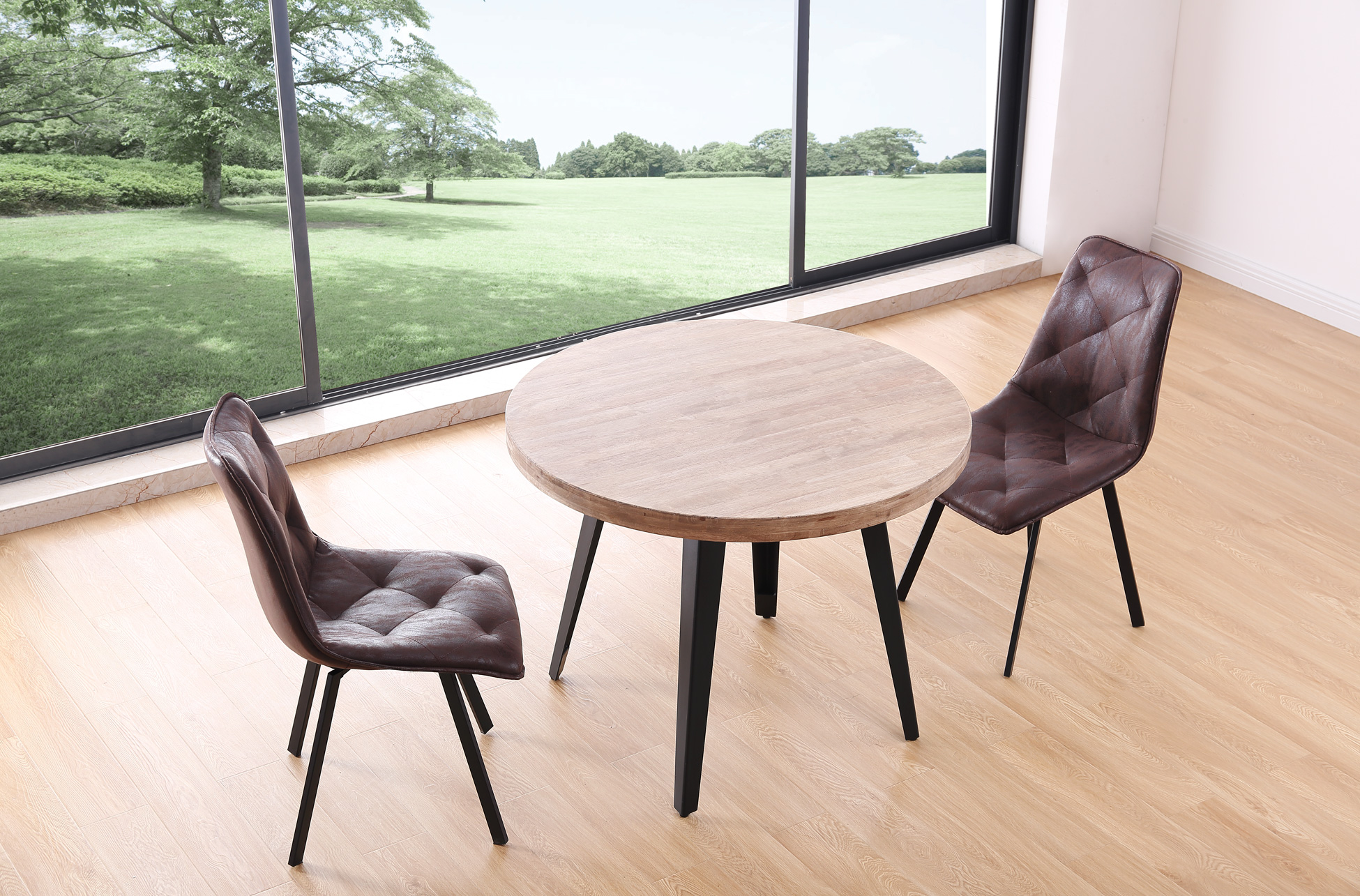 MESA COMEDOR REDONDA FIJA BERG 100 CM ROBLE HONEY / NEGRO. Tapa en madera de roble.