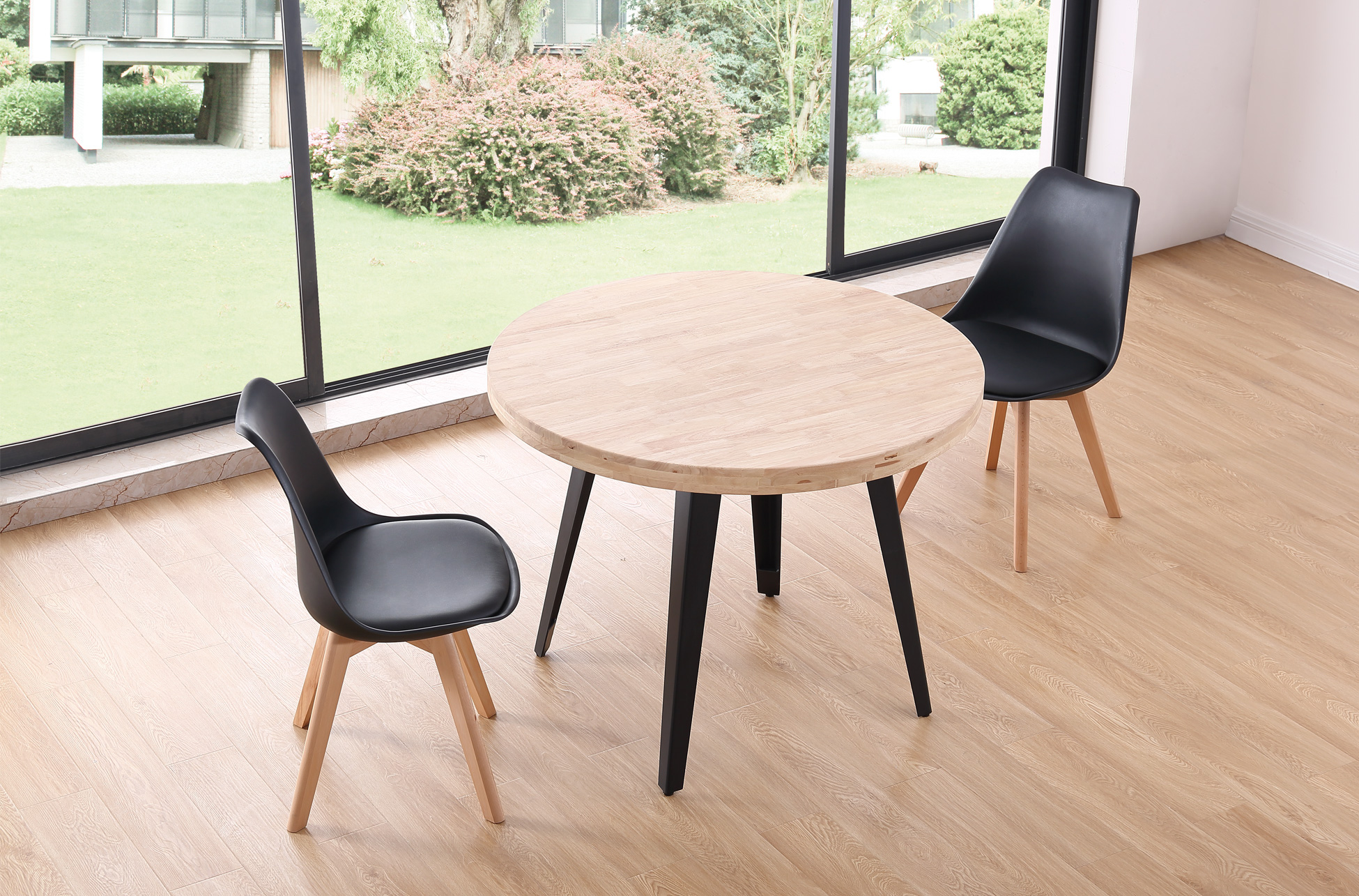 MESA COMEDOR REDONDA FIJA BERG 100 CM ROBLE NORDISH / NEGRO. Tapa en madera de roble.